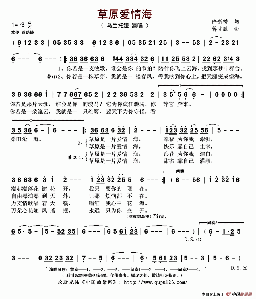 关于《草原爱情海》曲谱的评论