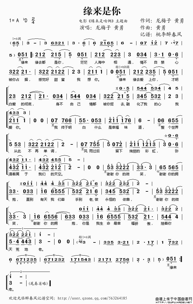 关于《缘来是你》曲谱的评论