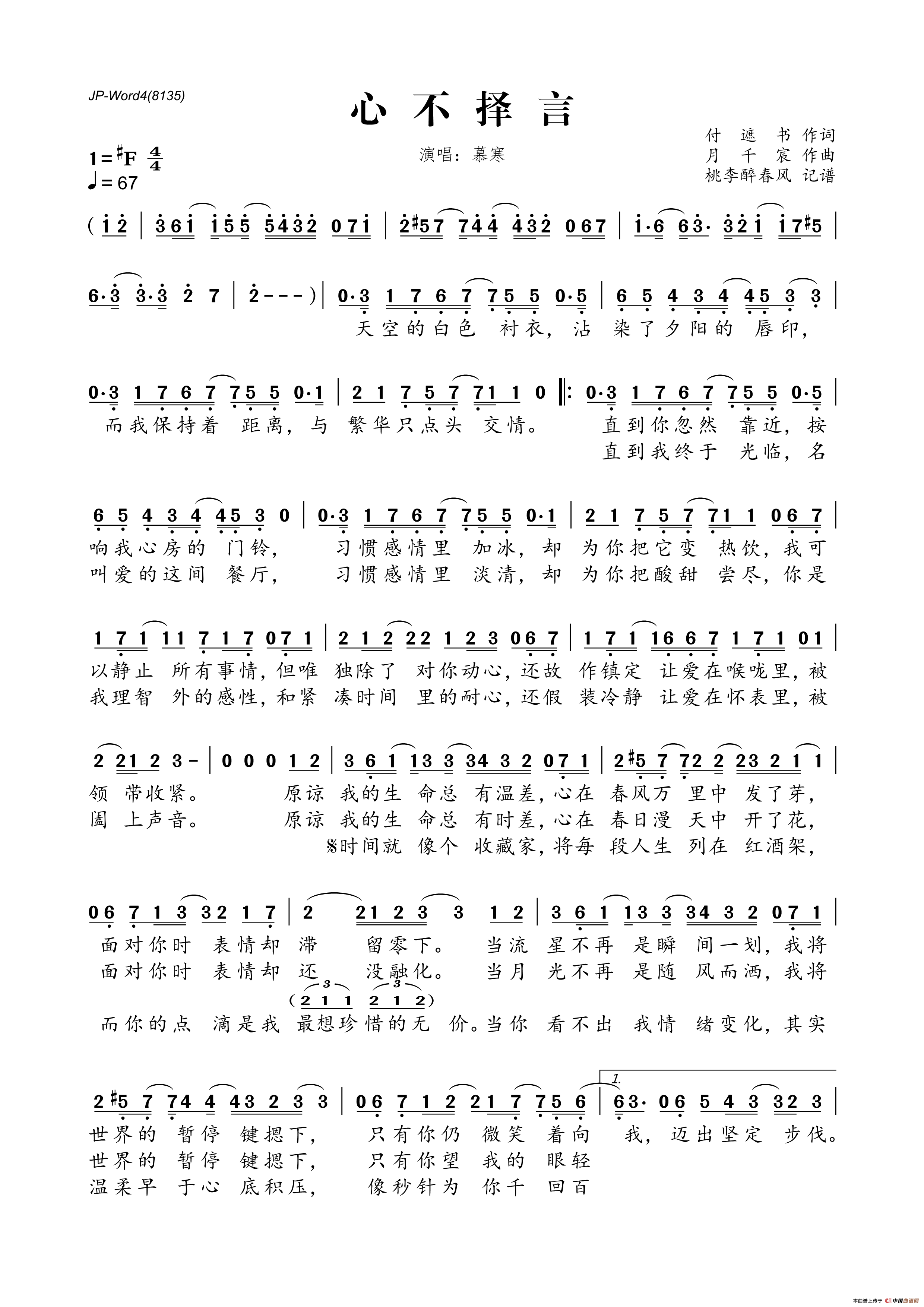 提示:在曲谱图片上单击右键,选择"图片另存为..."即可将曲谱保存到您的电脑中,打印时候可将图片插入到WORD中,调整合适大小打印即可。