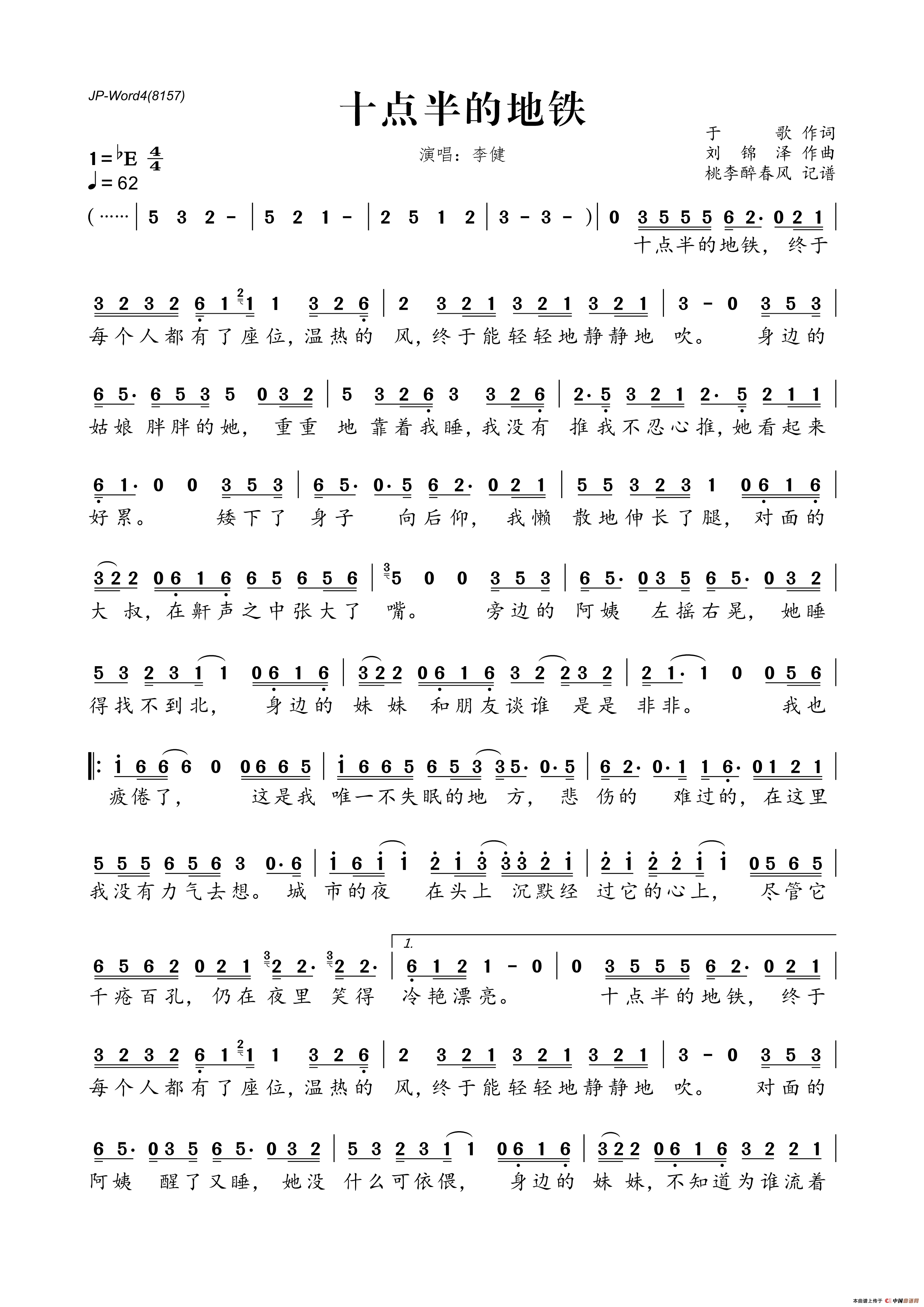 《十点半的地铁》文本歌词