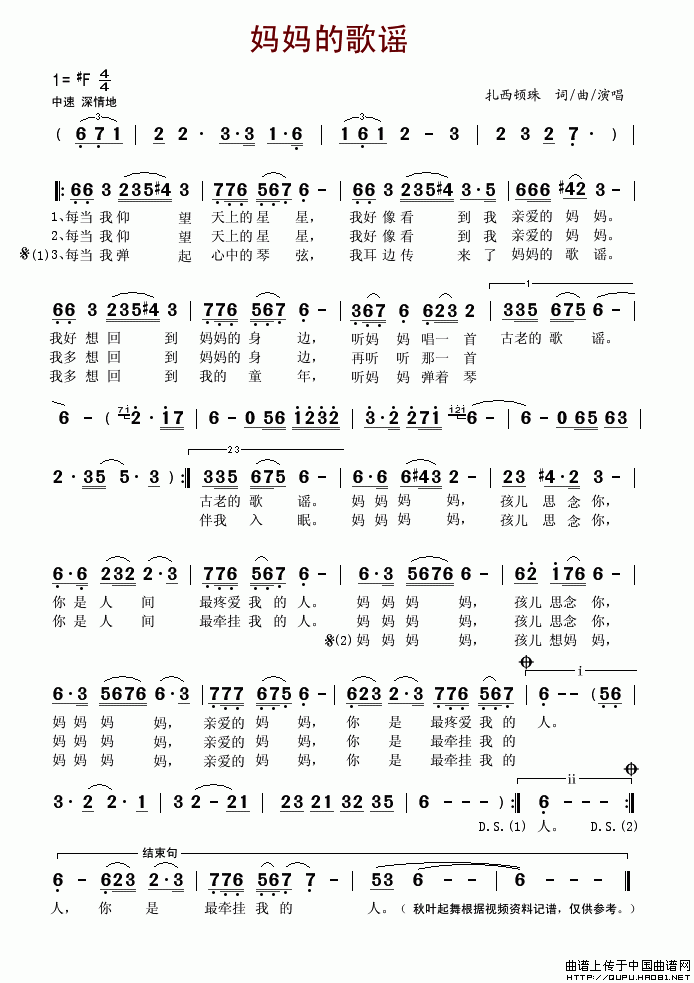 2011年母亲节,扎西顿珠送给他的母亲、藏族歌唱家宗庸卓玛这首饱含深情的歌曲。
