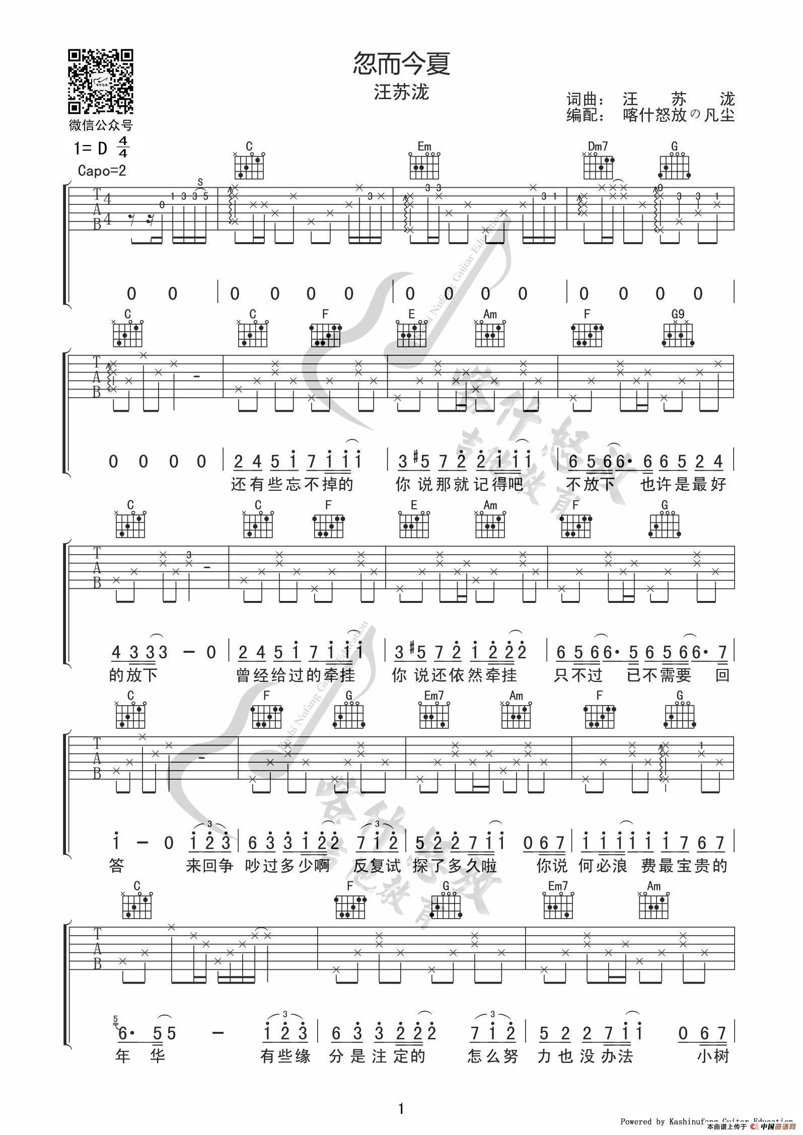 忽而今夏(吉他谱)