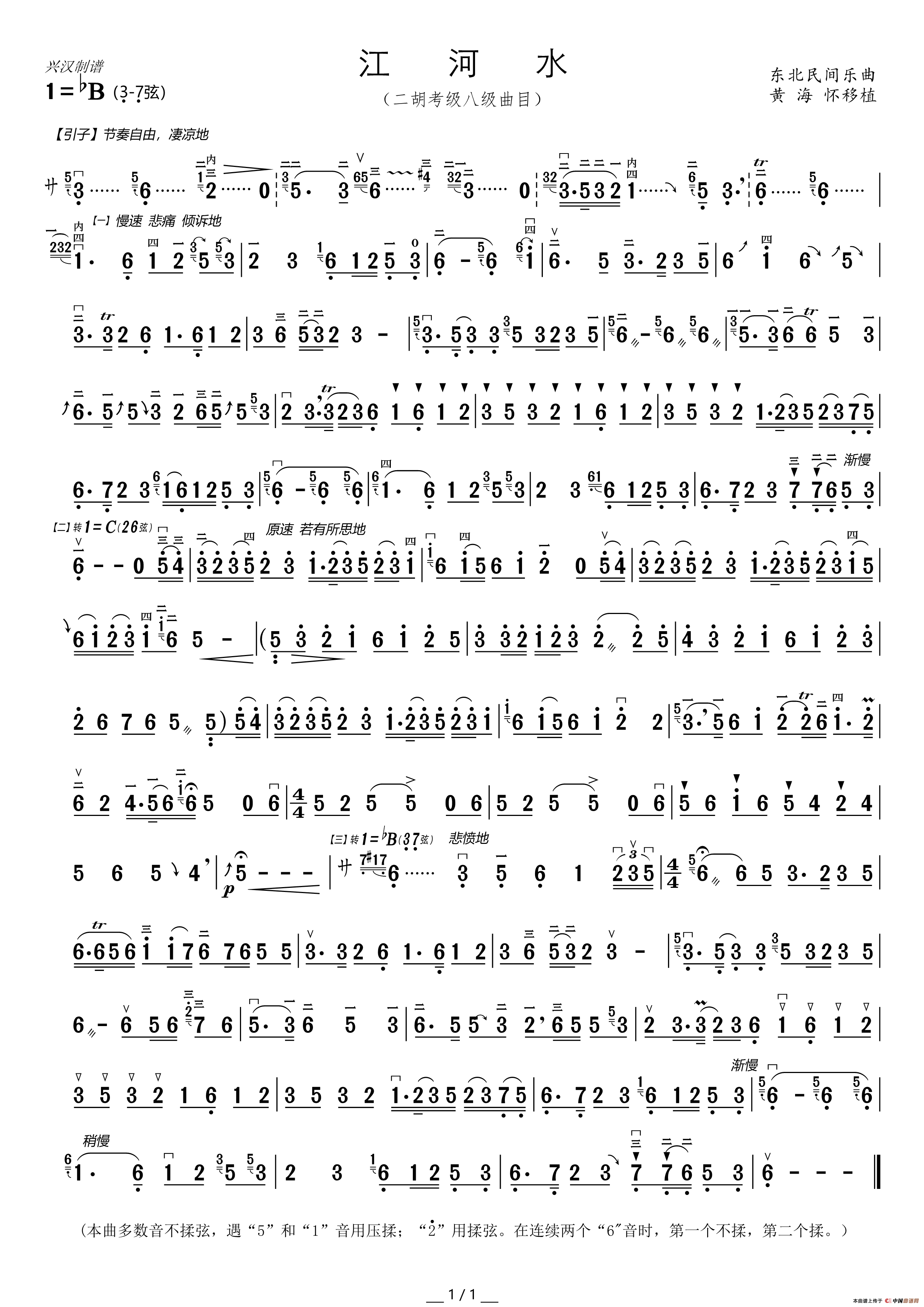 关于《江河水》曲谱的评论