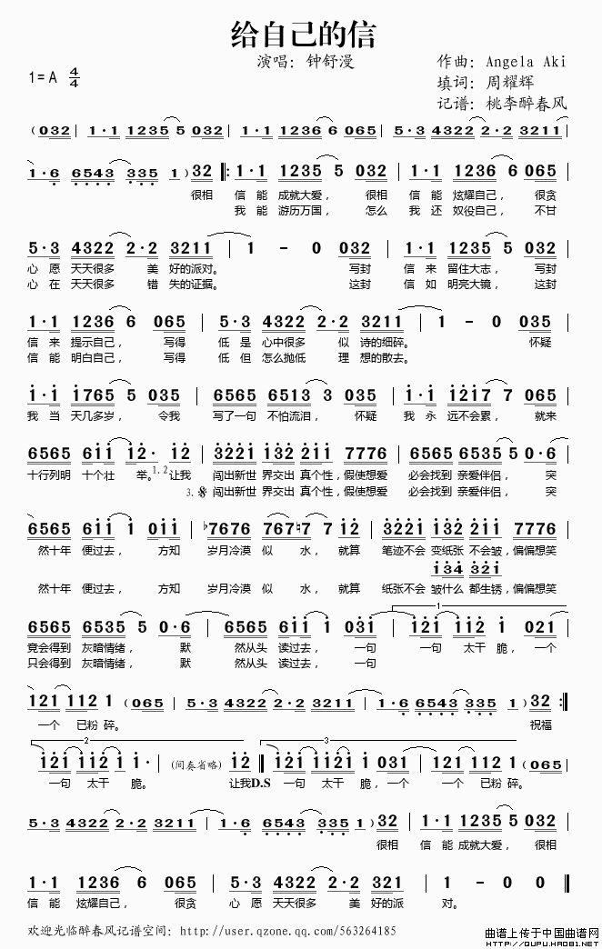 演唱(奏):钟舒漫 格式:简谱 来源:桃李醉春风记谱 上传:桃李醉春风