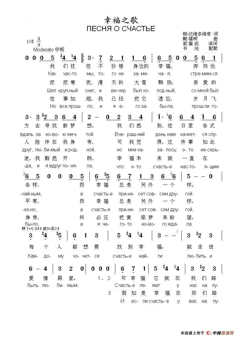 幸福之歌ПЕСНЯ О СЧАСТЬЕ(中俄简谱)