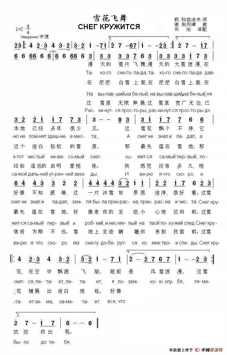 雪花飞舞СНЕГ КРУЖИТСЯ(中俄简谱)
