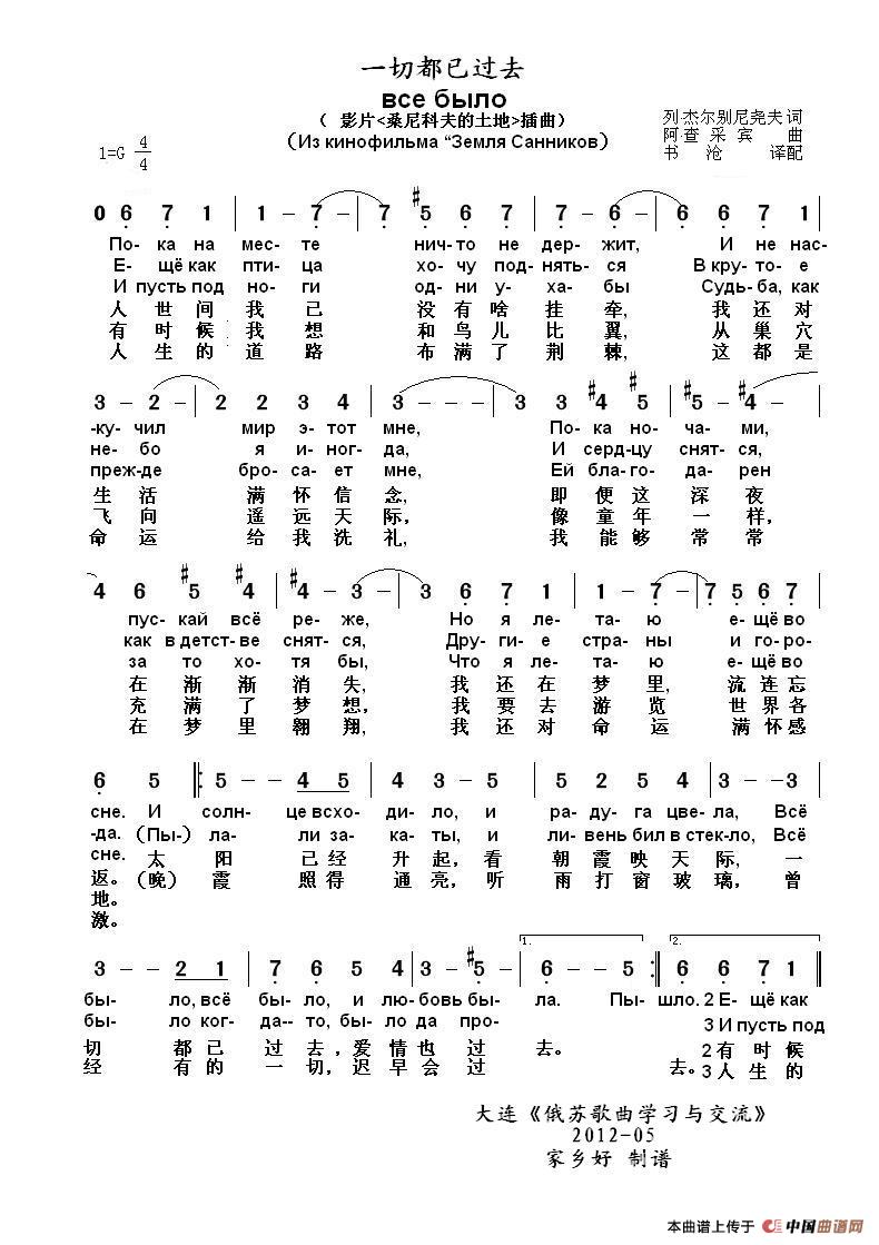 一切都已过去все было(中俄简谱)