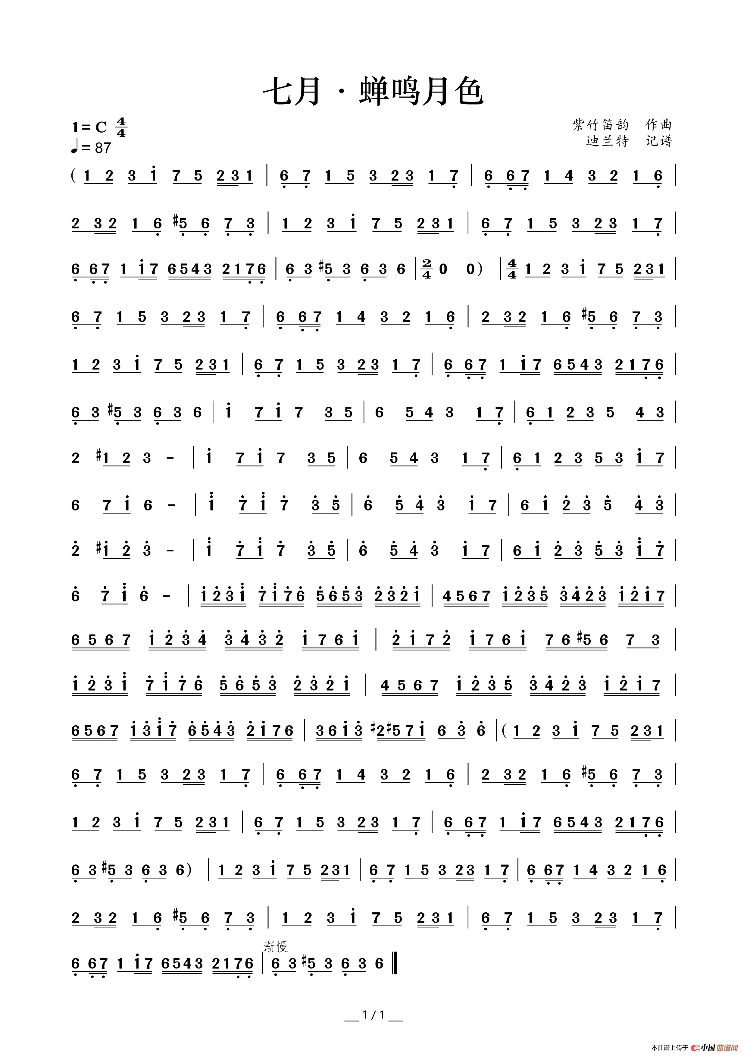 作曲:紫竹笛韵 来源:谱友迪兰特上传 上传:迪兰特