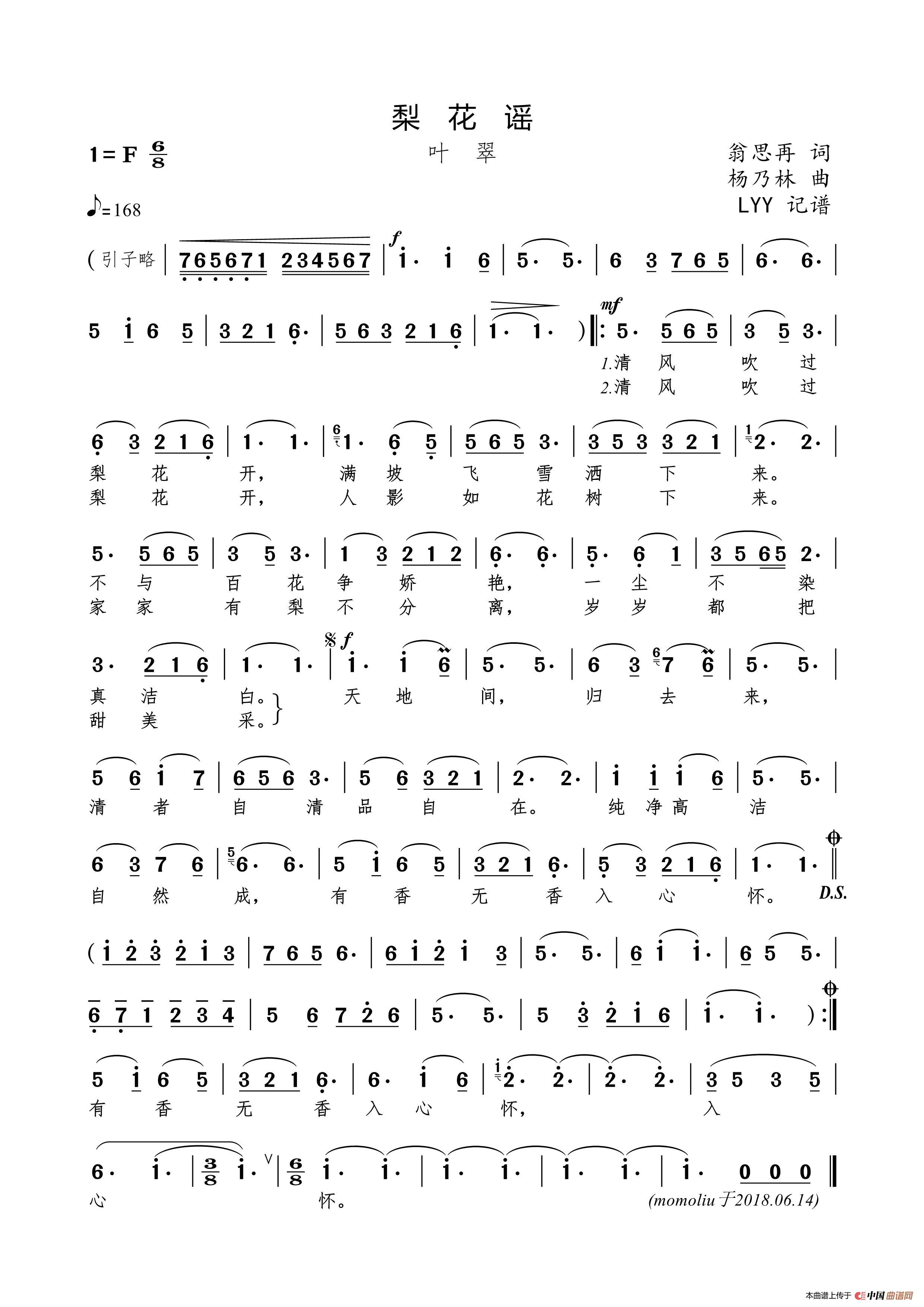 关于《梨花谣》曲谱的评论