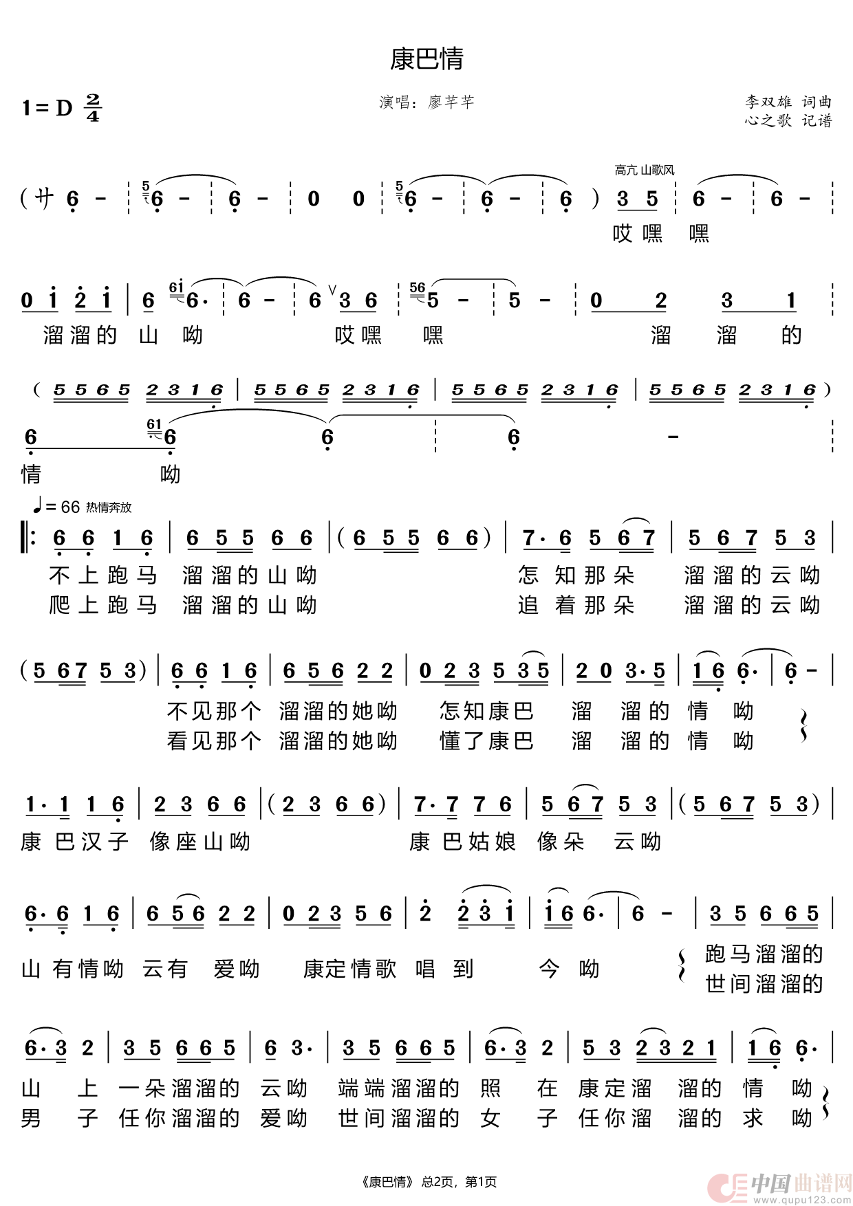 关于《康巴情》曲谱的评论