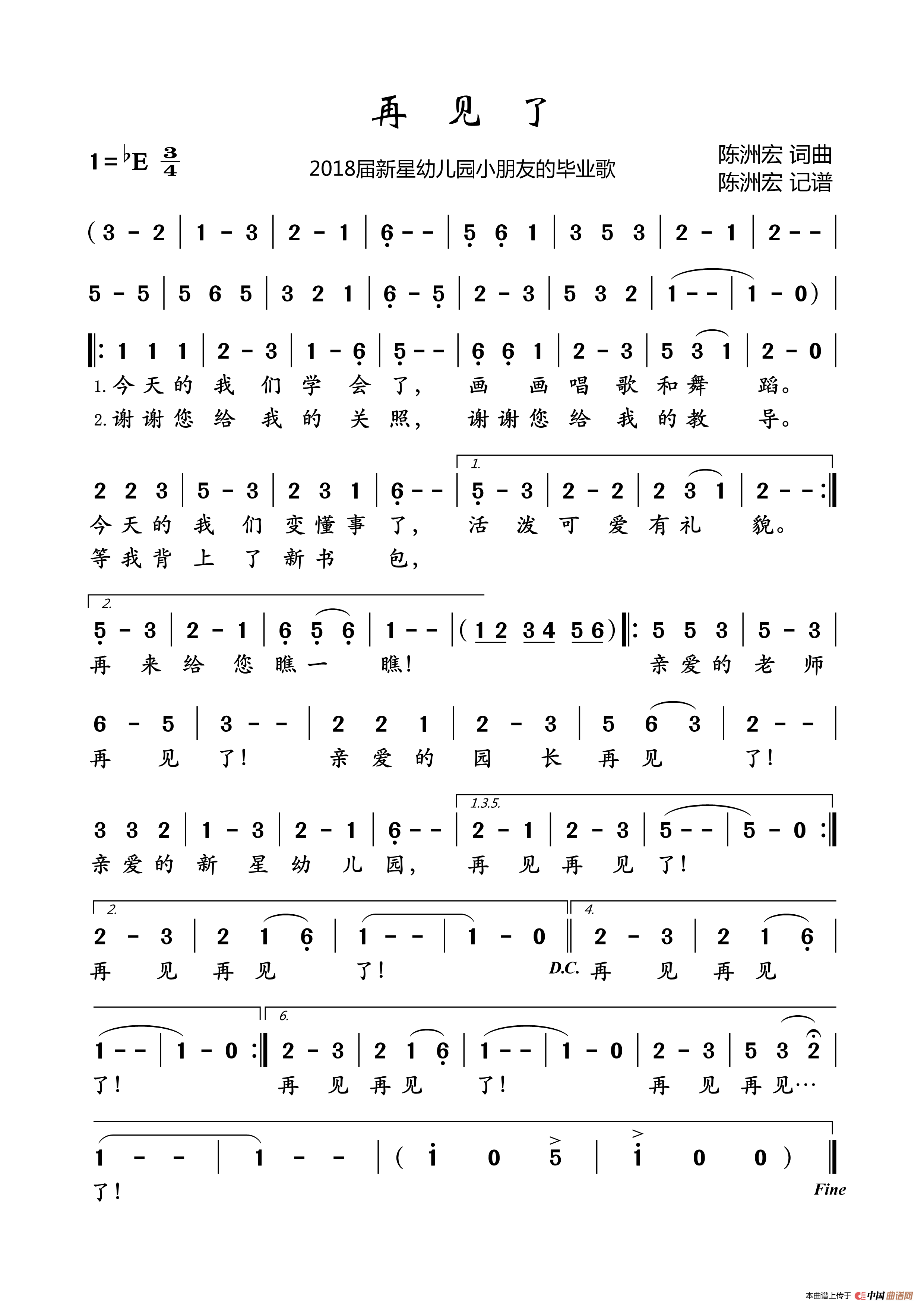 这首歌是我本人(陈洲宏)新星幼儿园2018届毕业的小朋友的毕业歌。