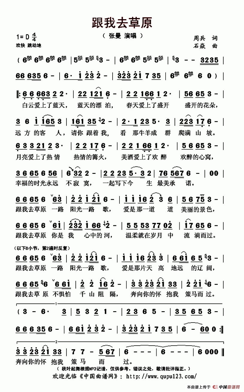 关于《跟我去草原》曲谱的评论