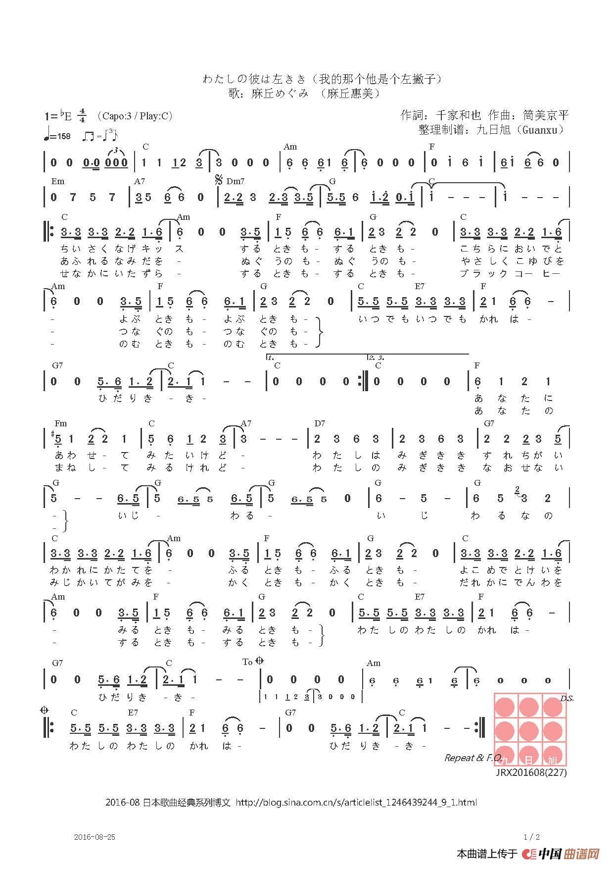 【日】わたしの彼は左きき(我的那个他是个左撇子)(1)_原文件名:わたしの彼は左きき(日语简谱)_页面_1.jpg