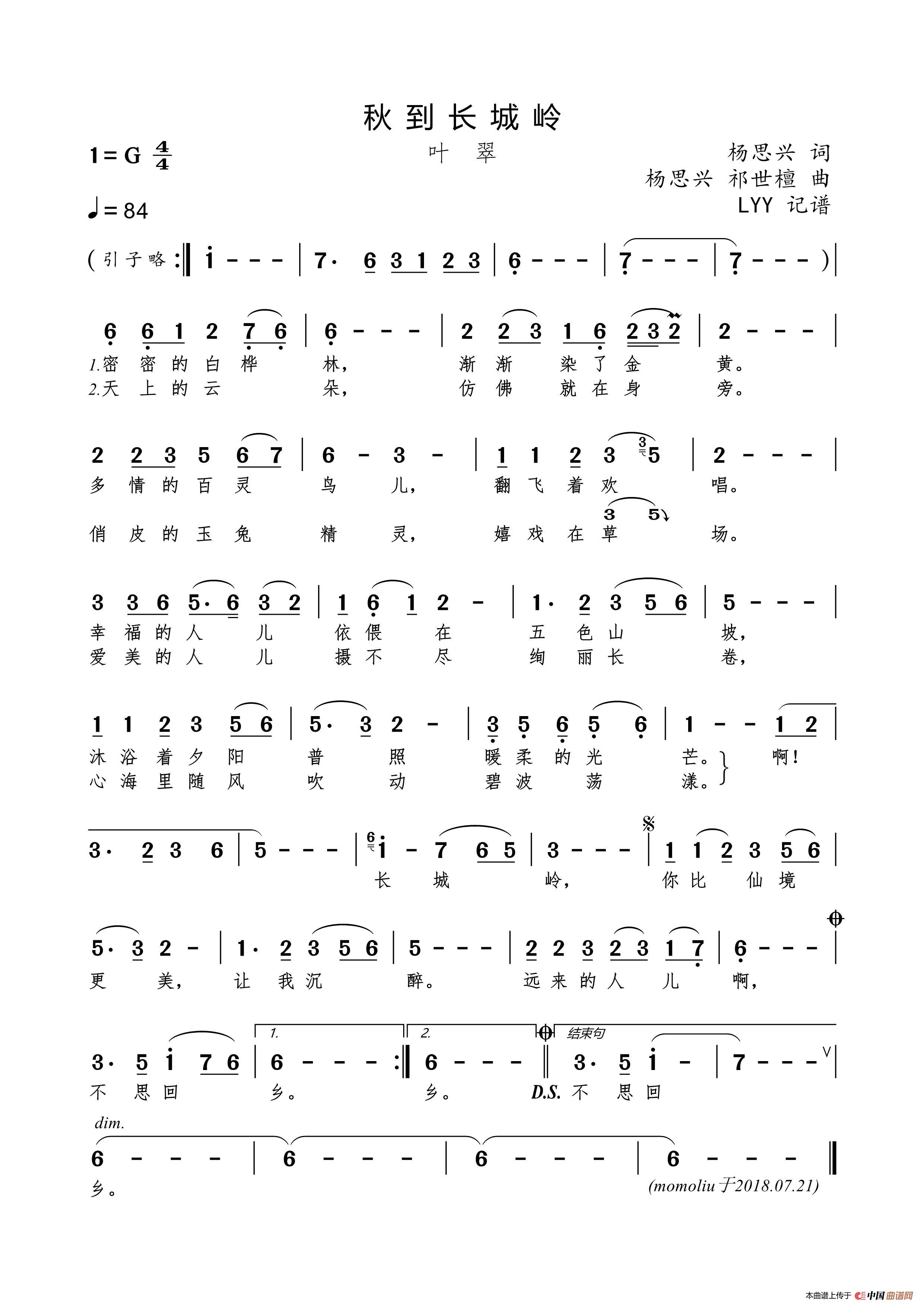 秋到长城岭(杨思兴词 杨思兴 祁世檀曲)