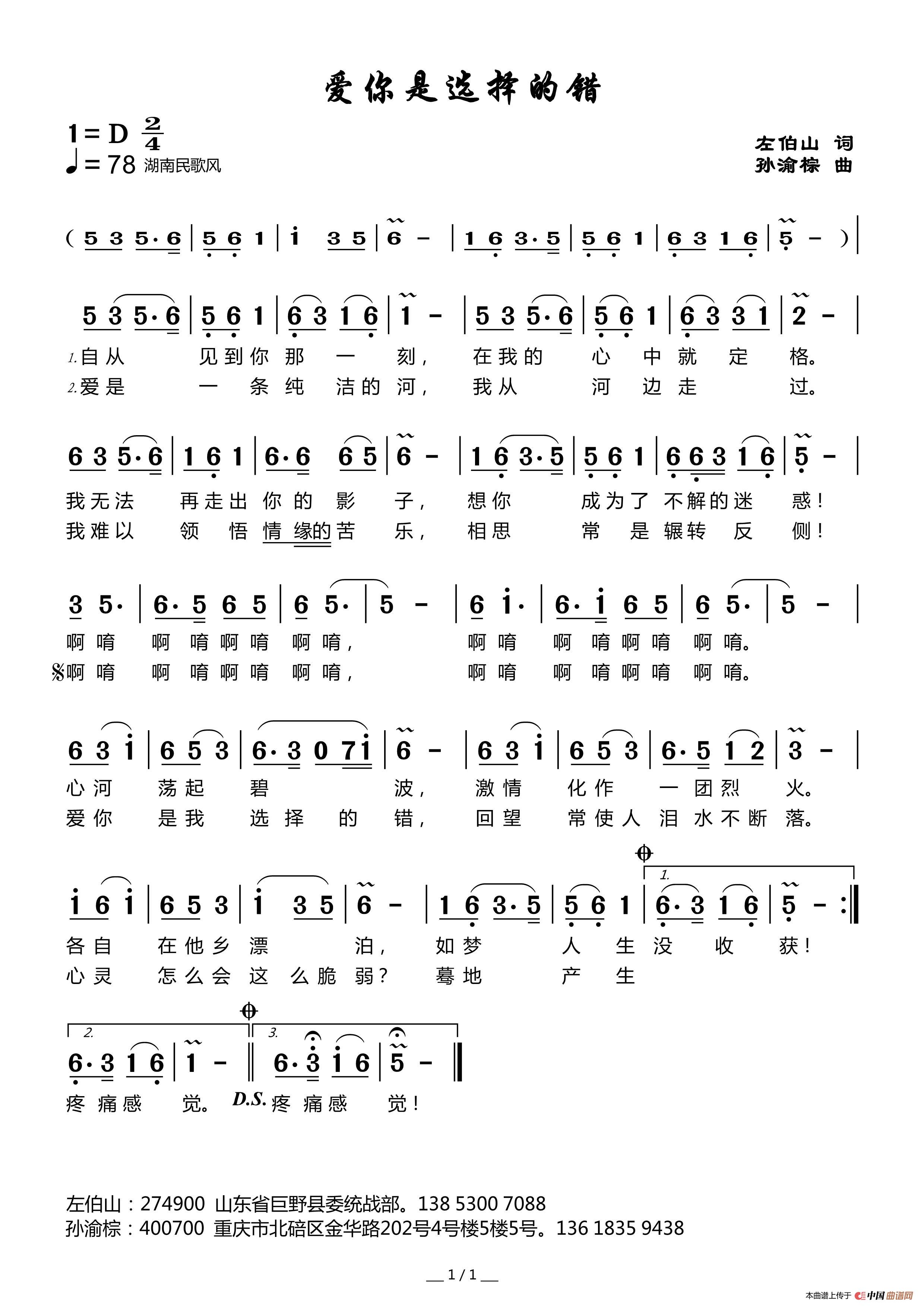 作词:左伯山   作曲:孙渝棕   来源:谱友老骥1上传   上传:老骥1   日期:2018-08-06   浏览次数: