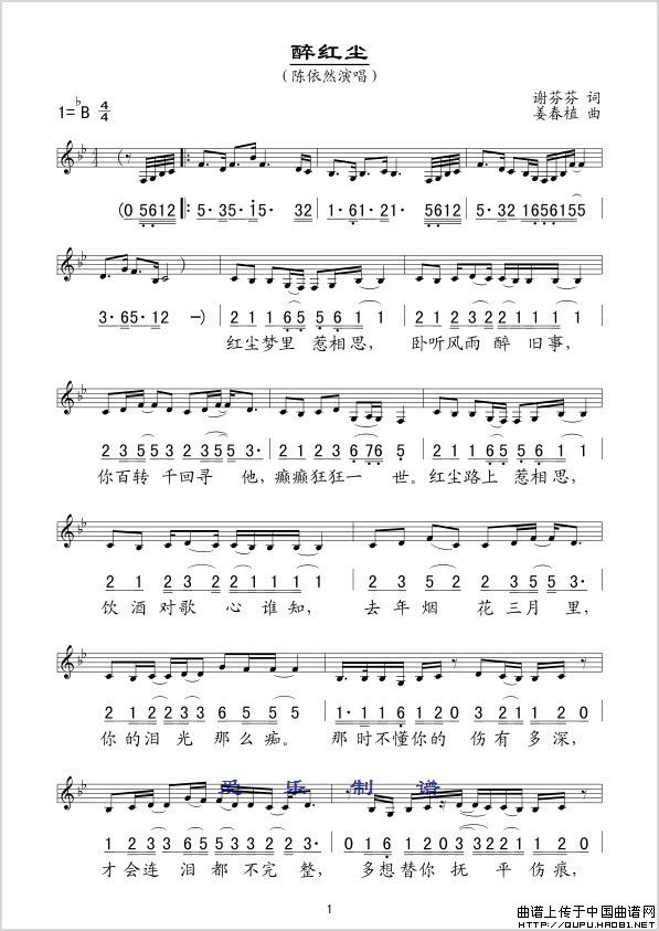 关于《醉红尘》曲谱的评论