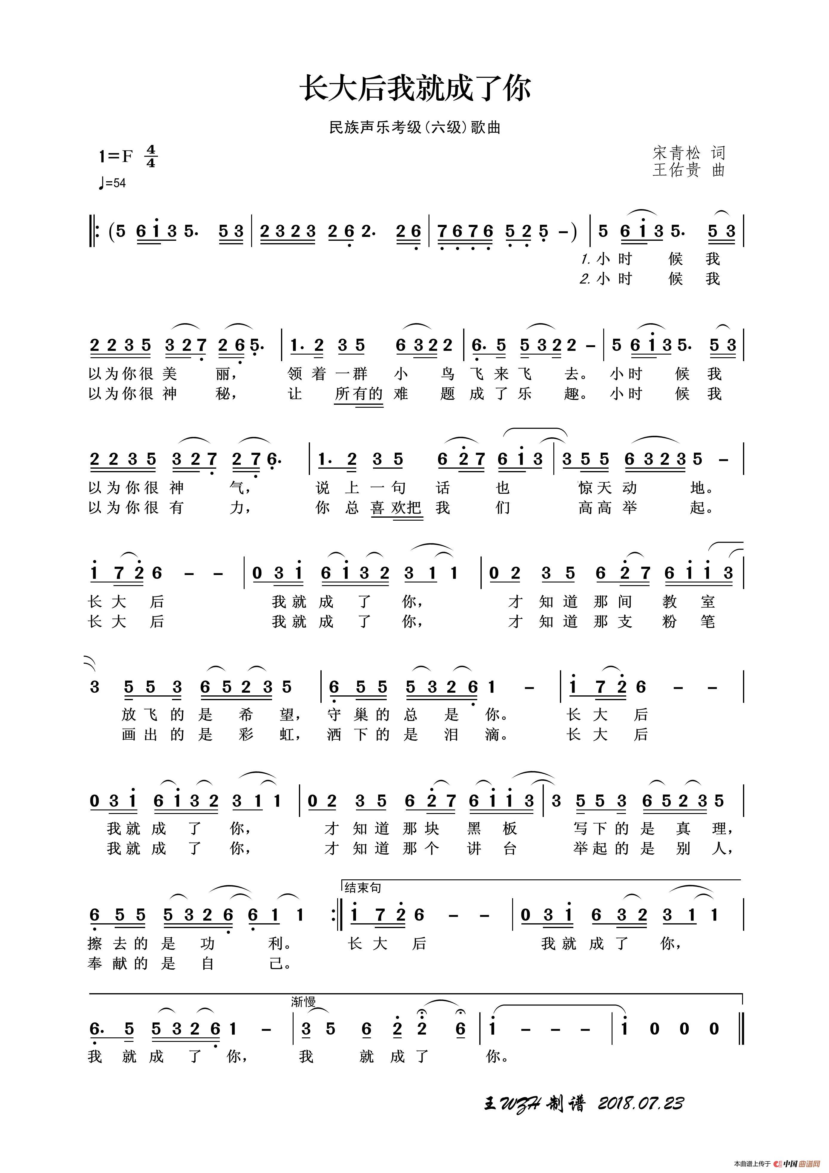 关于《民族声乐考级歌曲:长大后我就成了你》曲谱的评论