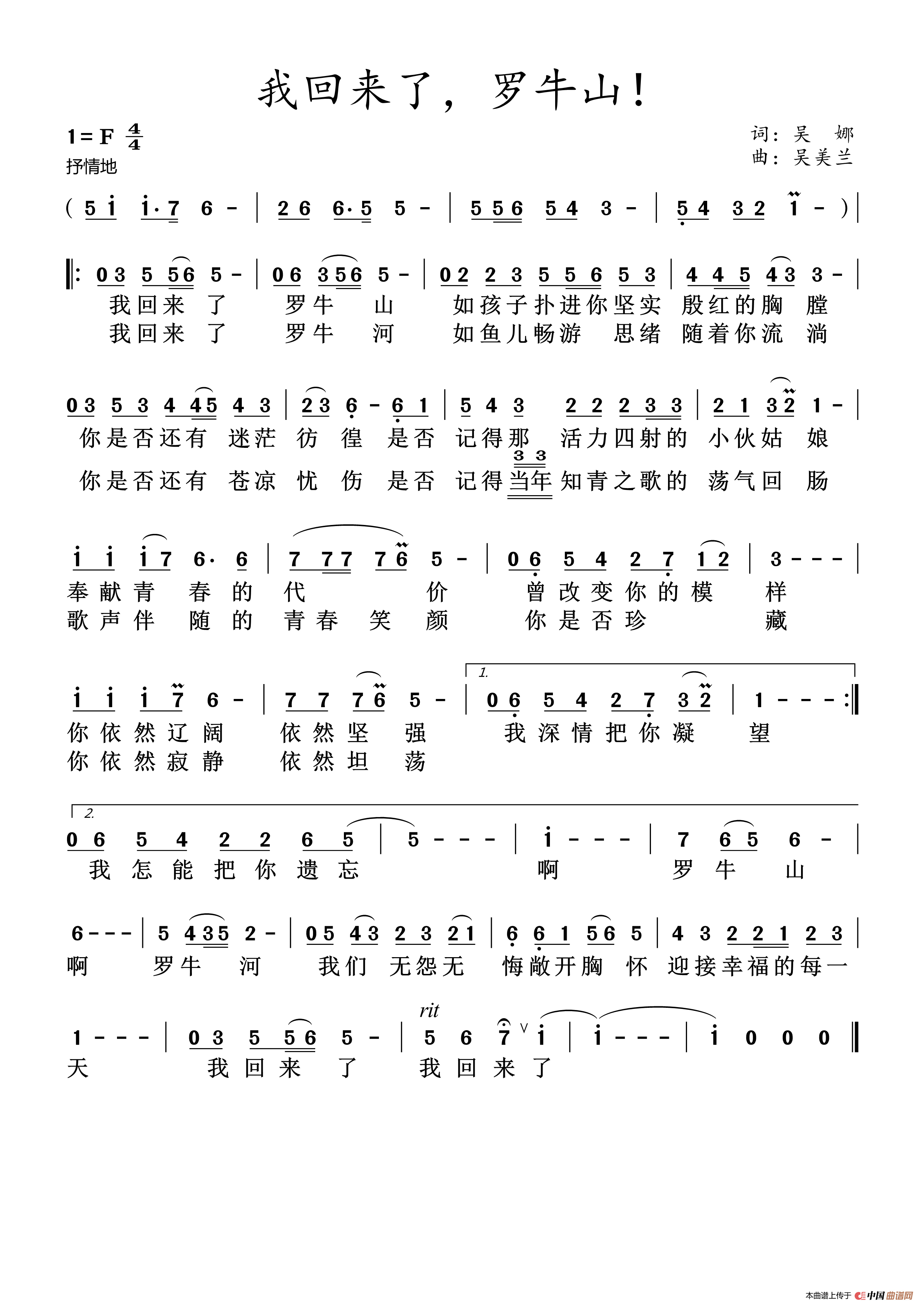 关于《我回来了,罗牛山!》曲谱的评论