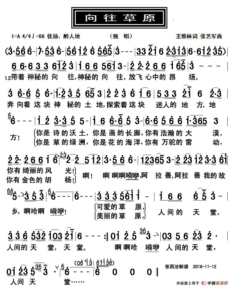 关于《向往草原》曲谱的评论
