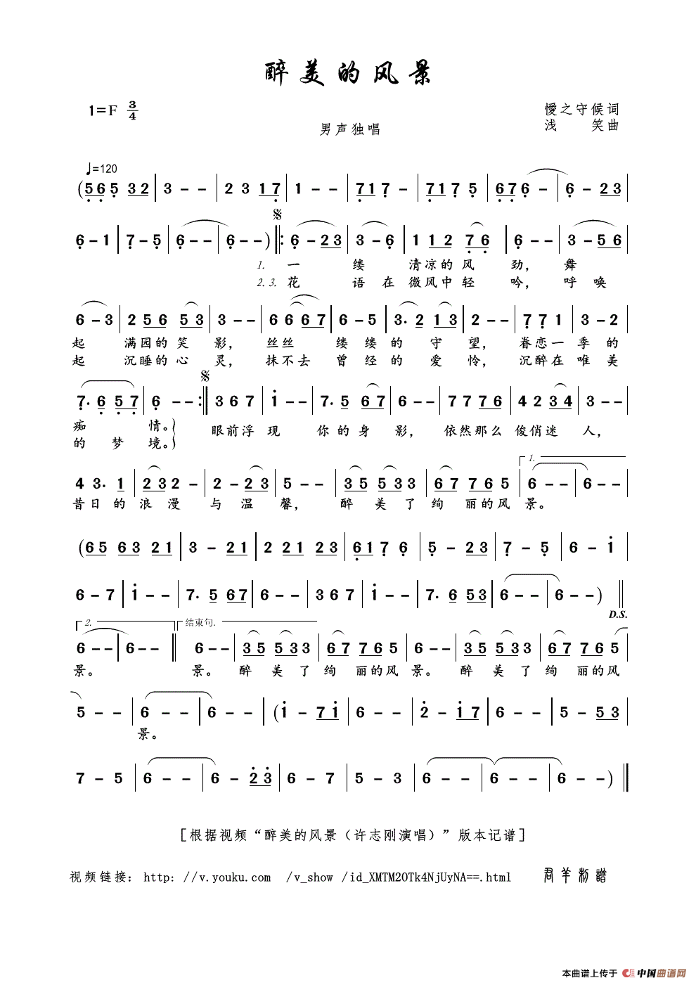 关于《醉美的风景》曲谱的评论