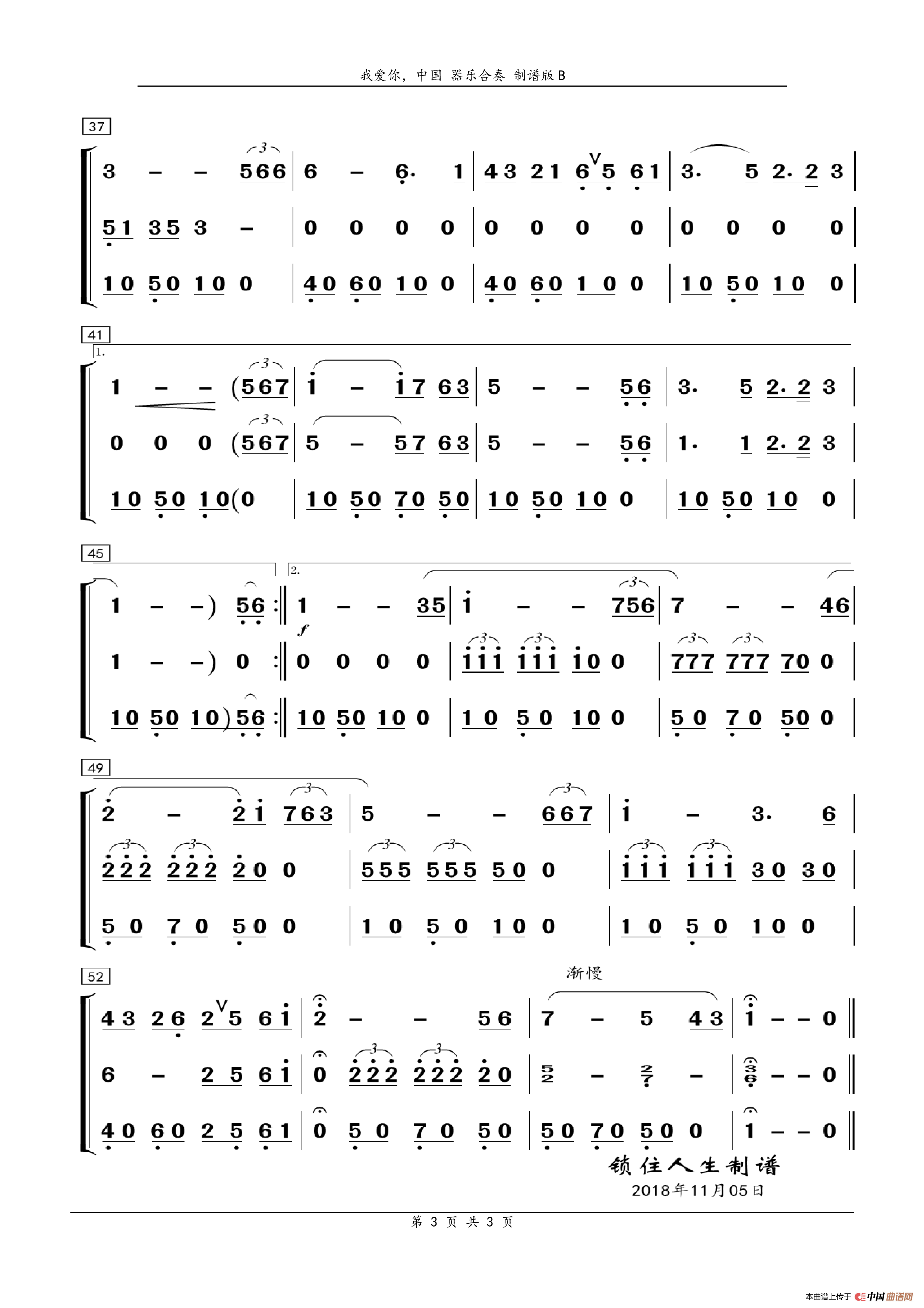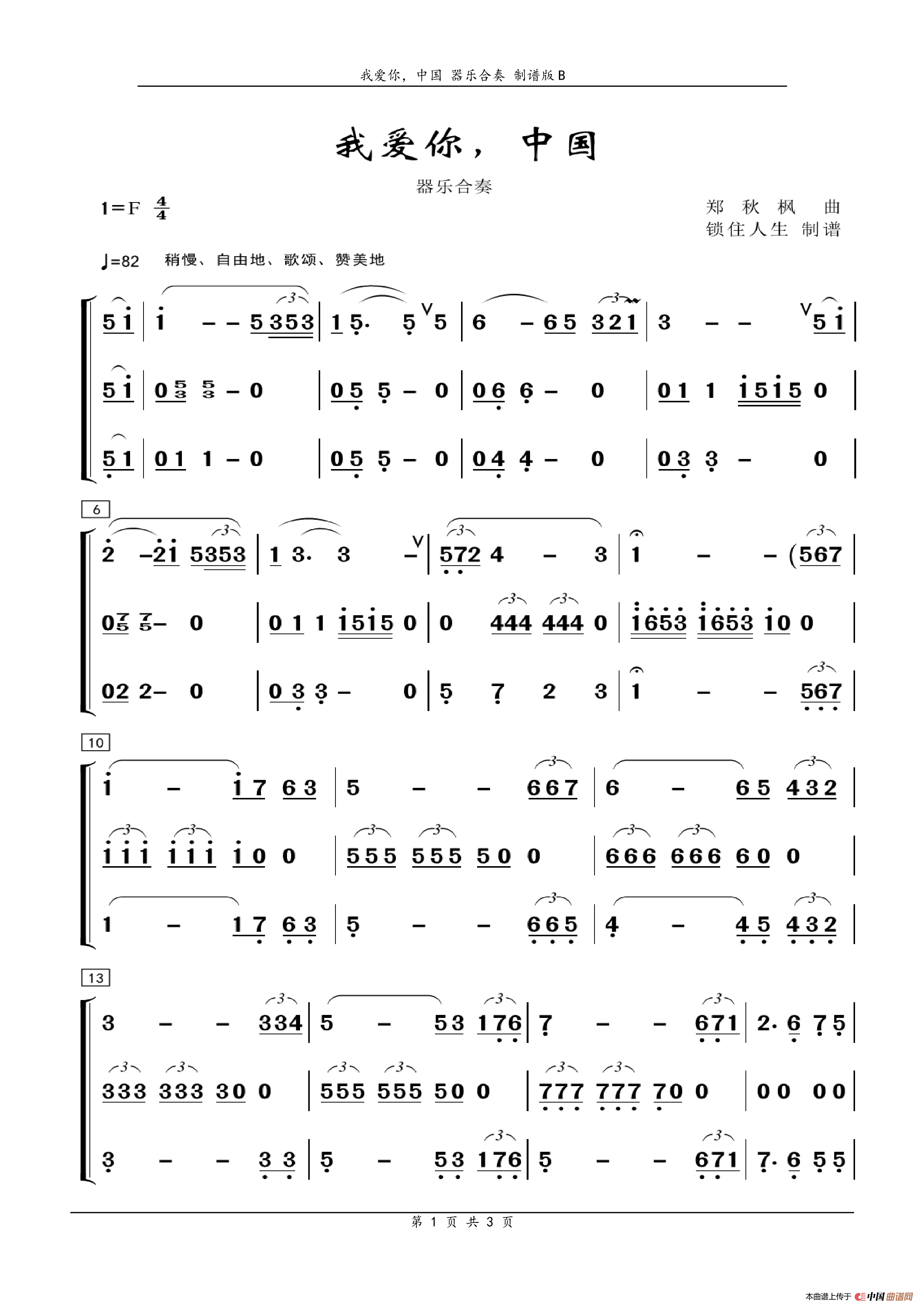 我爱你,中国 器乐合奏 总谱制谱版B
