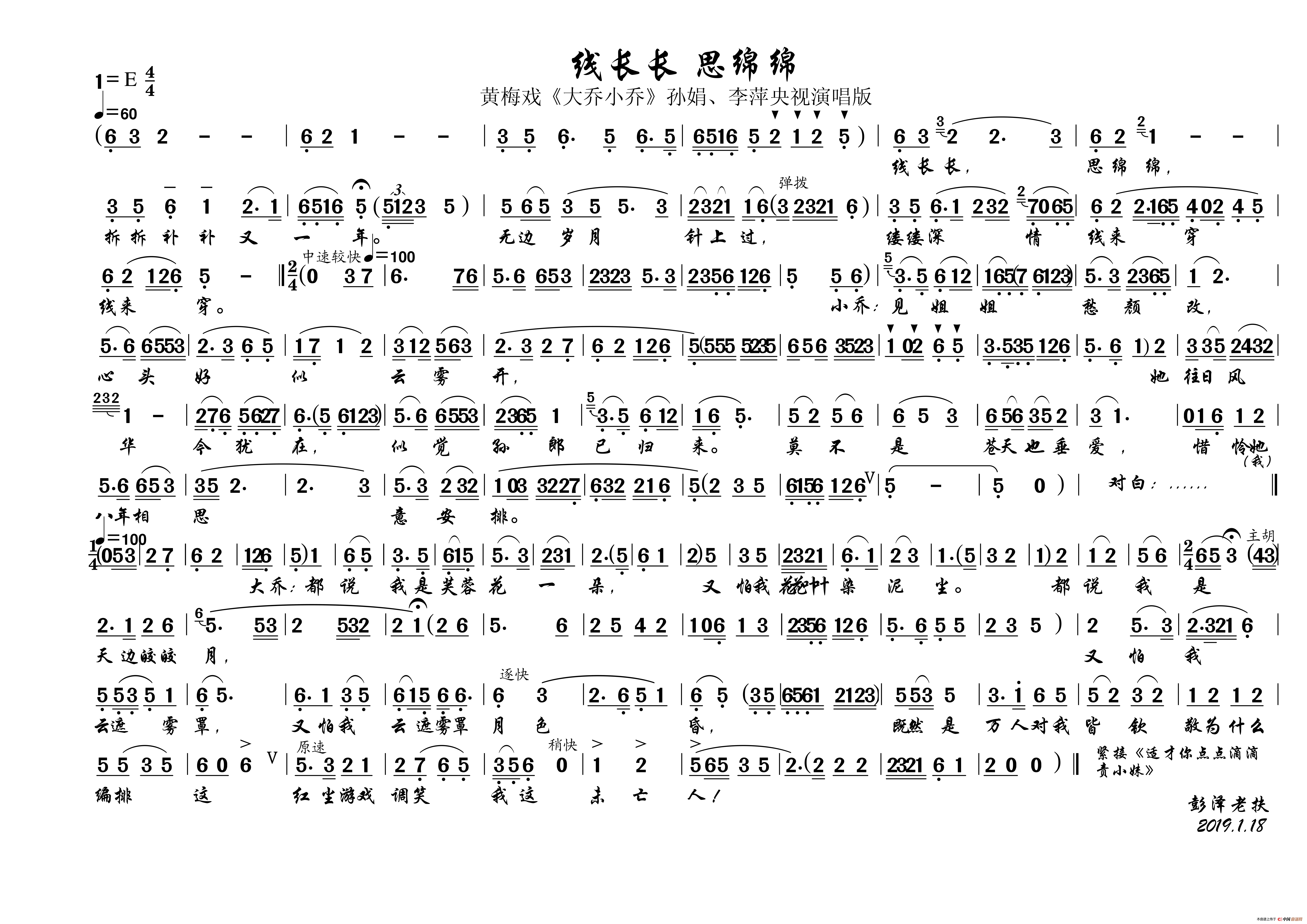关于《黄梅戏《大乔小乔》线长长 思绵绵》曲谱的评论