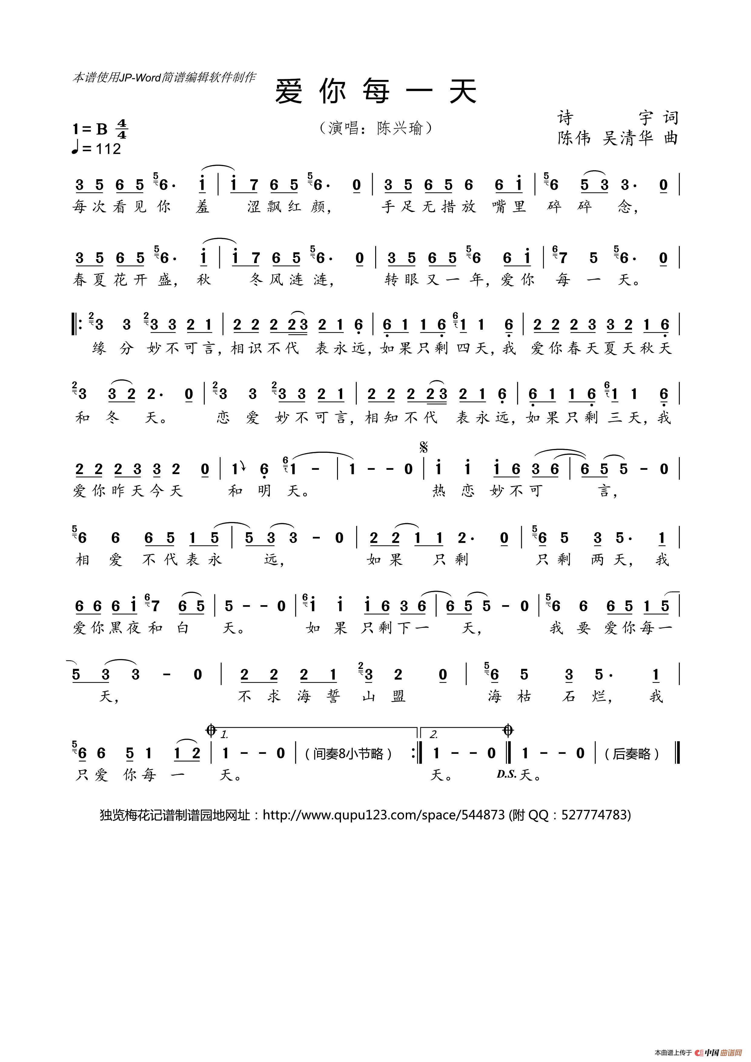 关于《爱你每一天》曲谱的评论