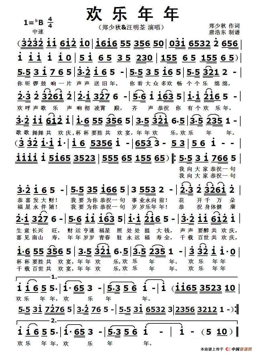 关于《欢乐年年》曲谱的评论