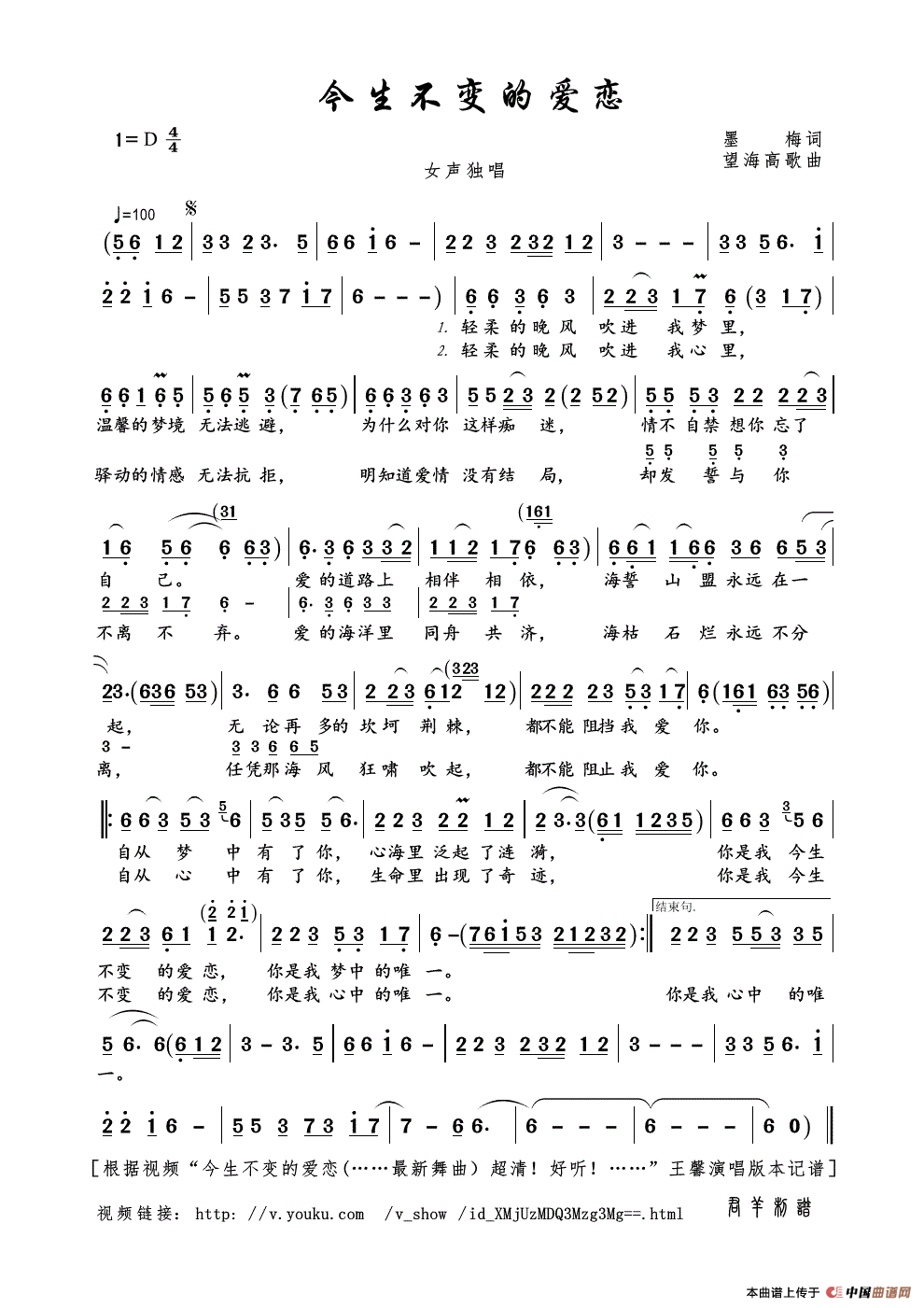 关于《今生不变的爱恋》曲谱的评论