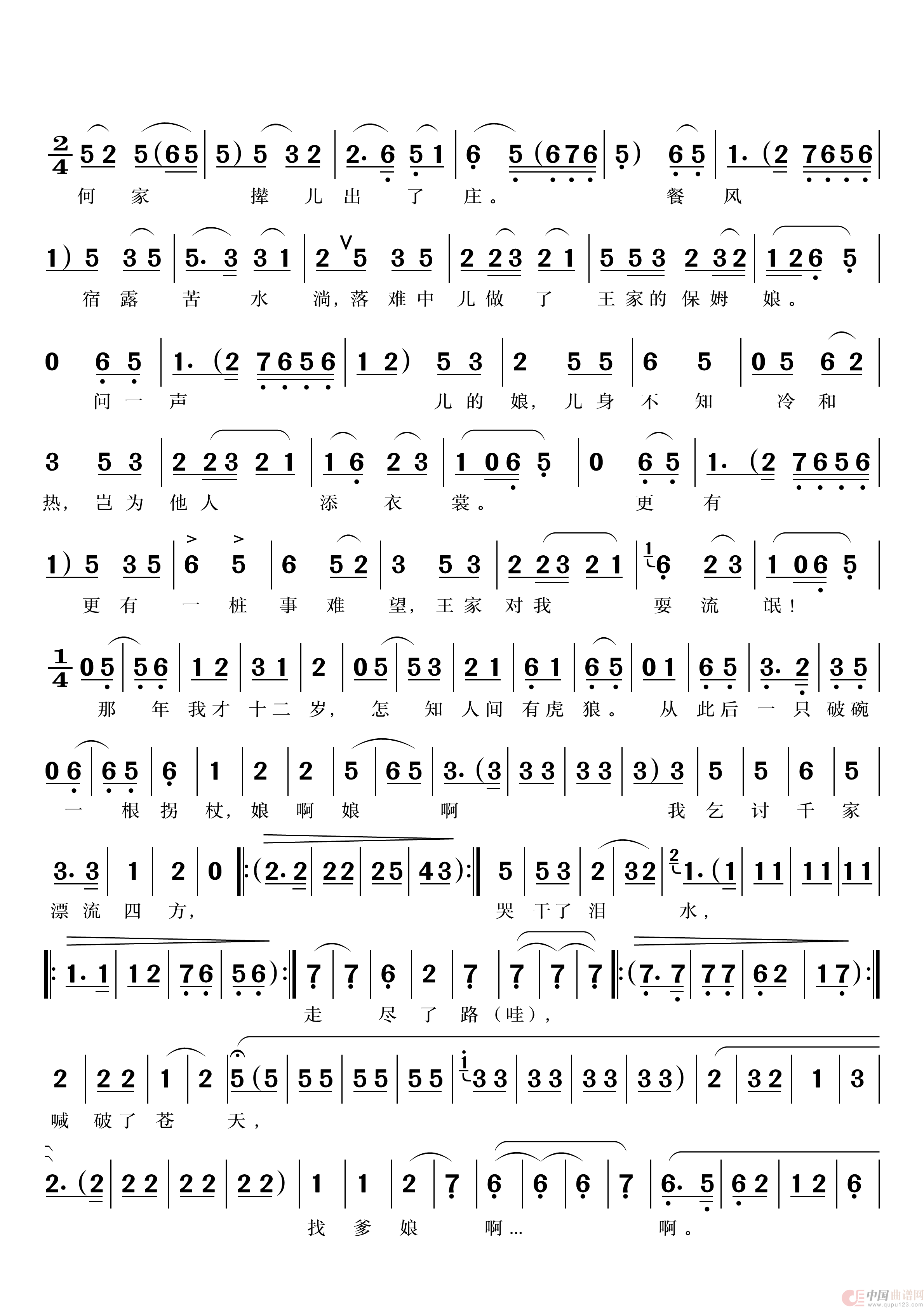 关于《叫一声儿的娘苦水流淌》曲谱的评论