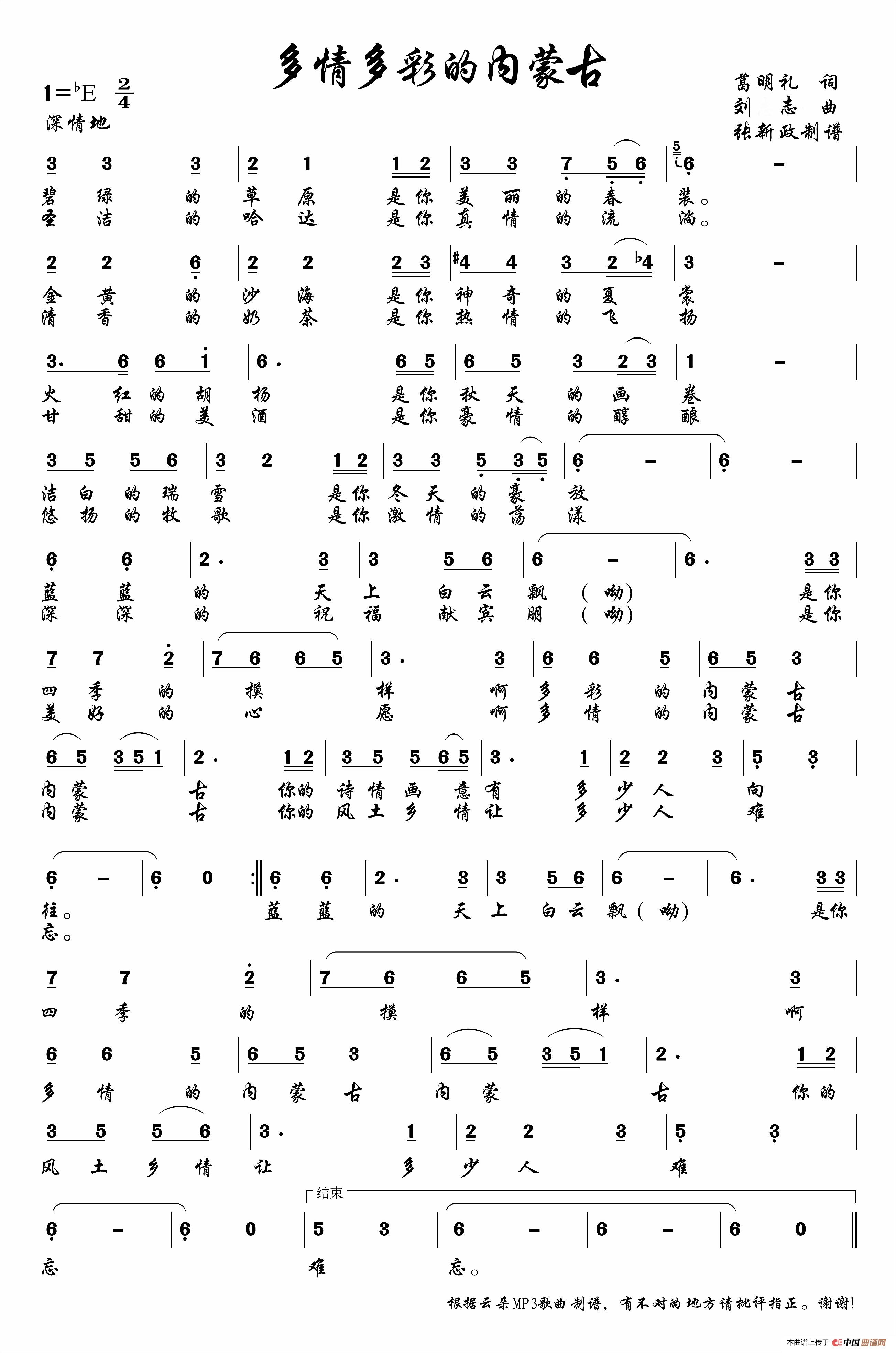关于《多情多彩的内蒙古》曲谱的评论