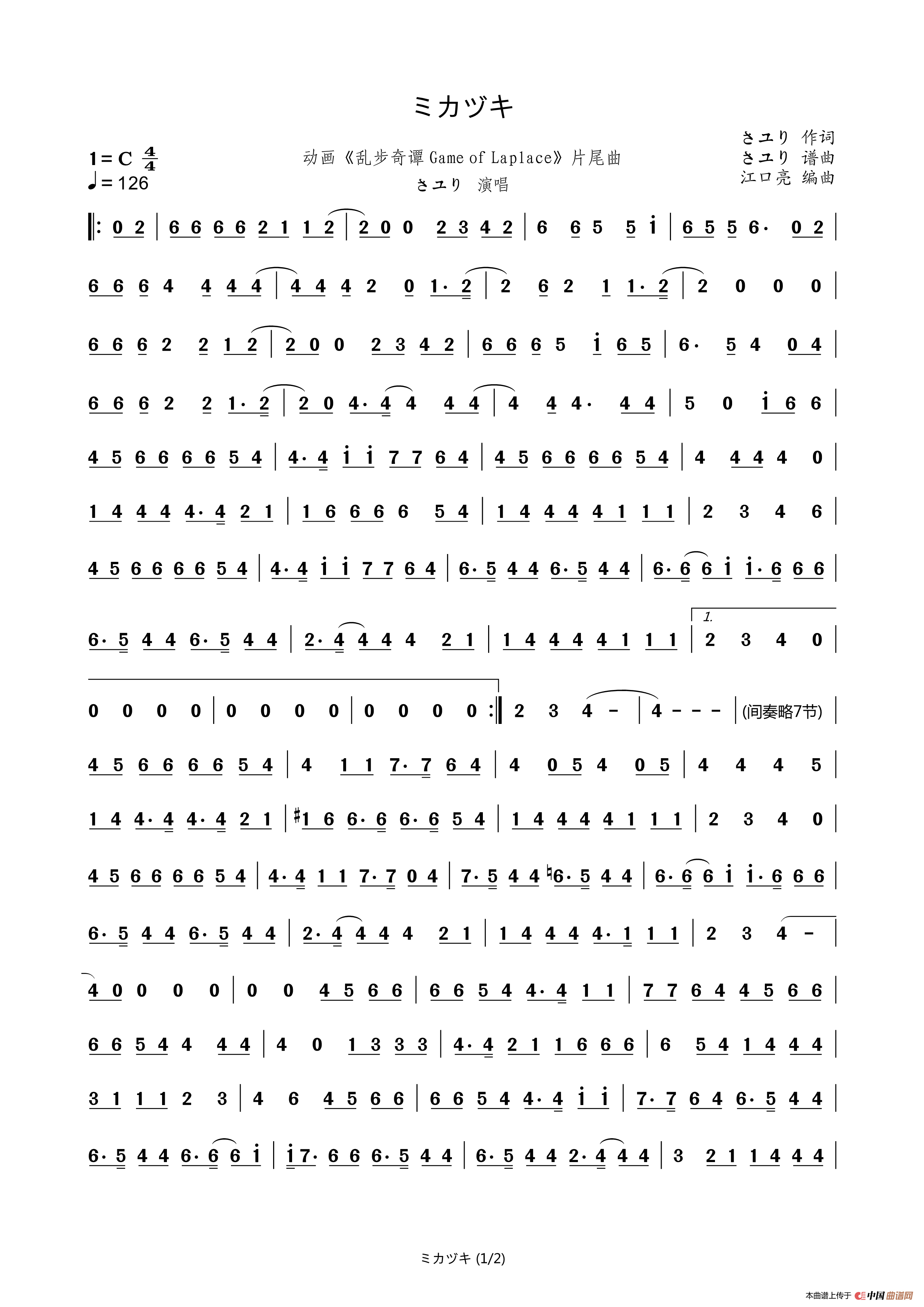 作词:さユり 作曲:さユり 演唱(奏):さユり 来源:谱友苍二君上传 上传:苍二君
