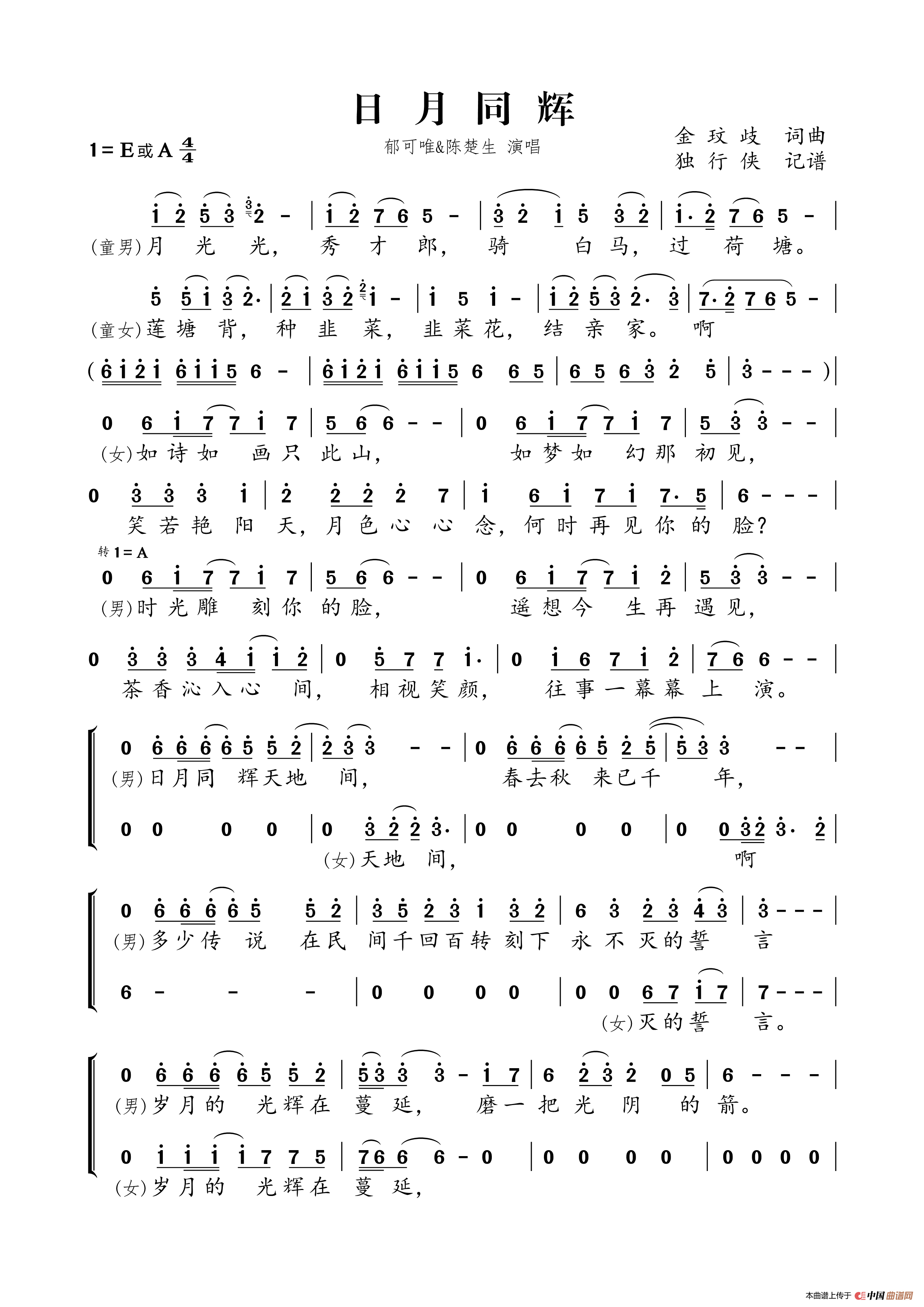关于《日月同辉》曲谱的评论