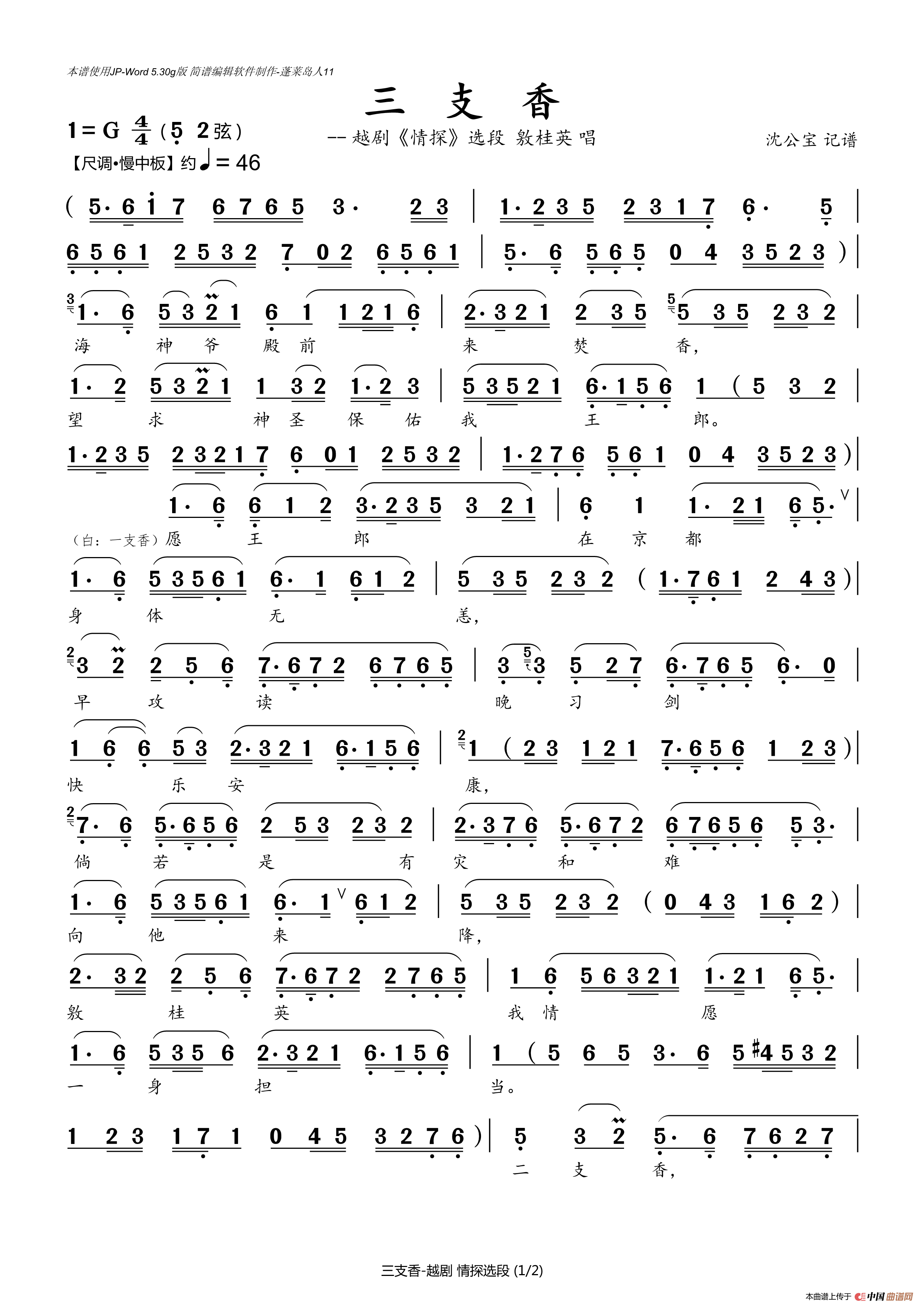来源:沈公宝 记谱 上传:蓬莱岛人