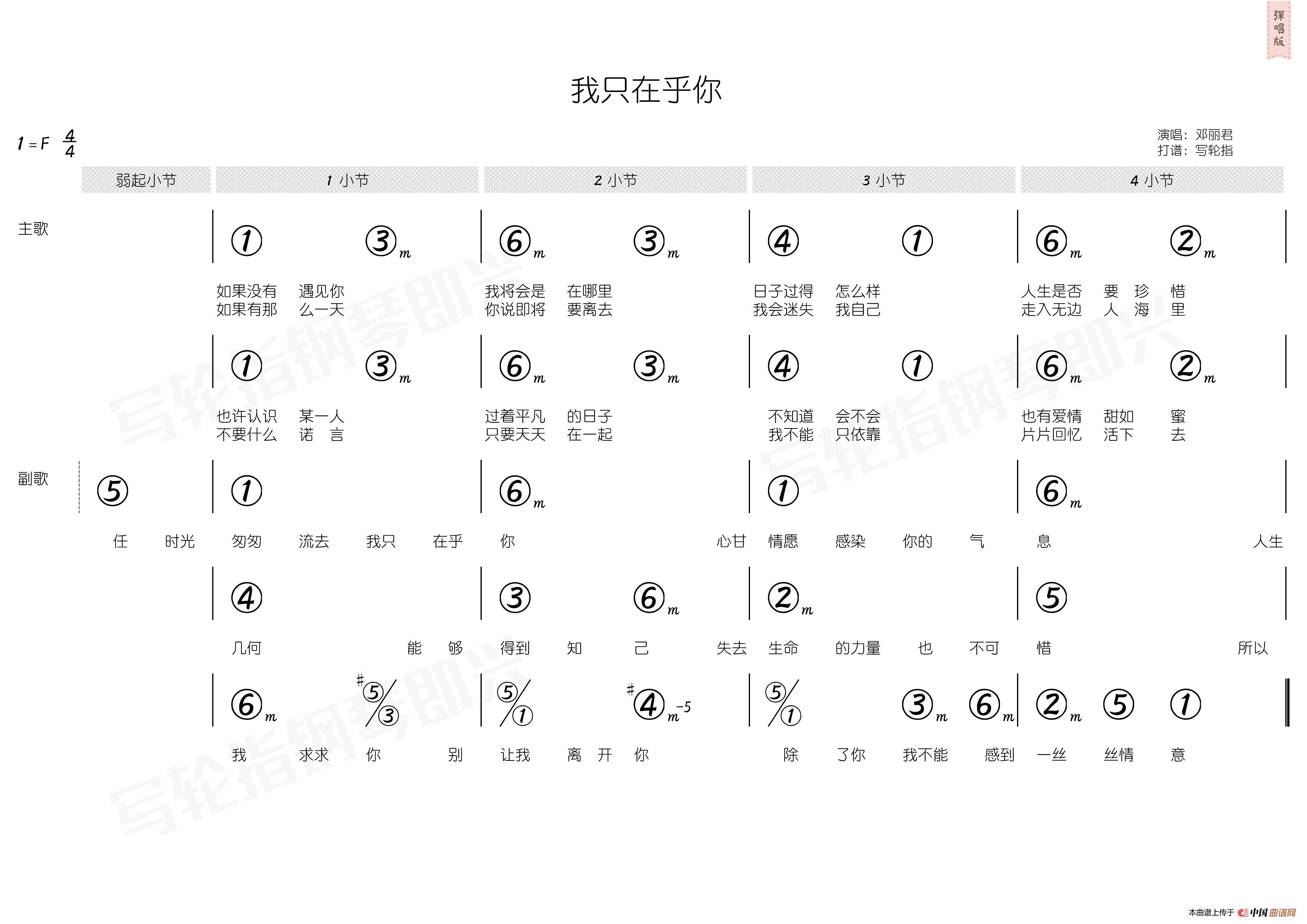 我只在乎你(简和谱)(1)_原文件名:W我只在乎你-邓丽君(专业版).jpg我只在乎你(简和谱)(1)_原文件名:W我只在乎你-邓丽君(弹唱版).jpg