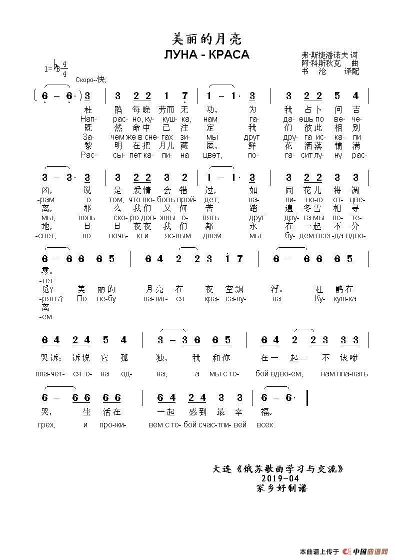 美丽的月亮ЛУНА - КРАСА(中俄简谱)