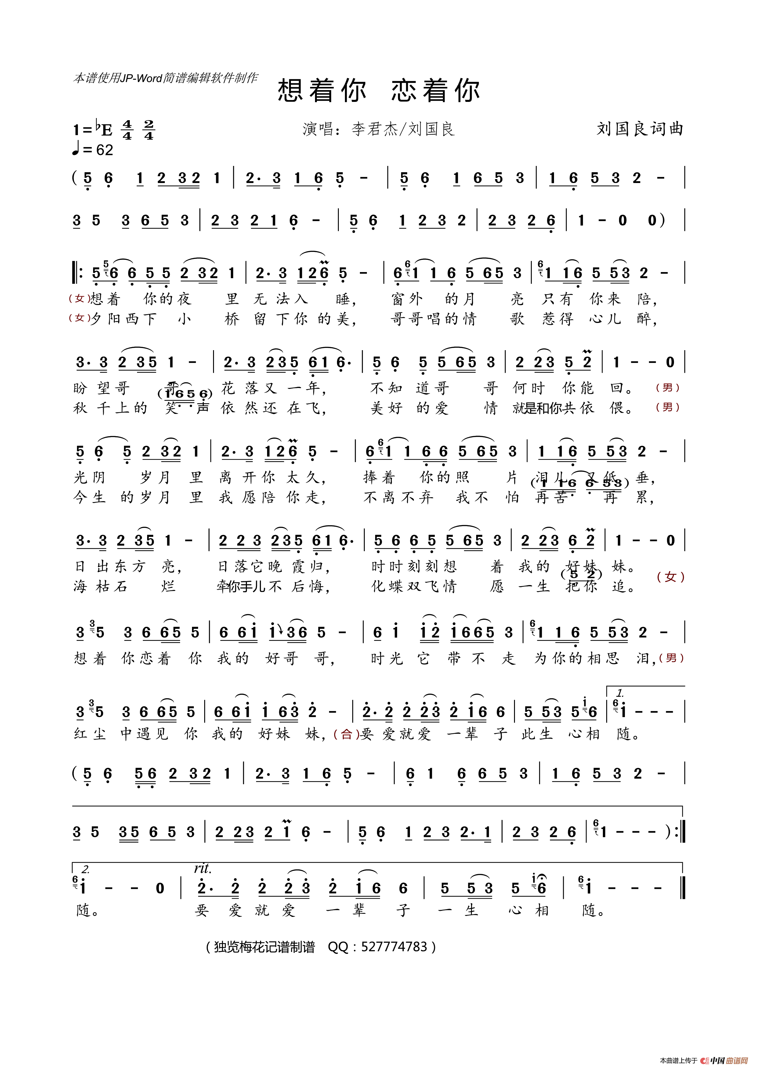 作词:刘国良   作曲:刘国良   演唱(奏):李君杰/刘国良   来源:谱友独览梅花567上传   上传:独览梅花567   日期:2019-04-05   浏览次数:
