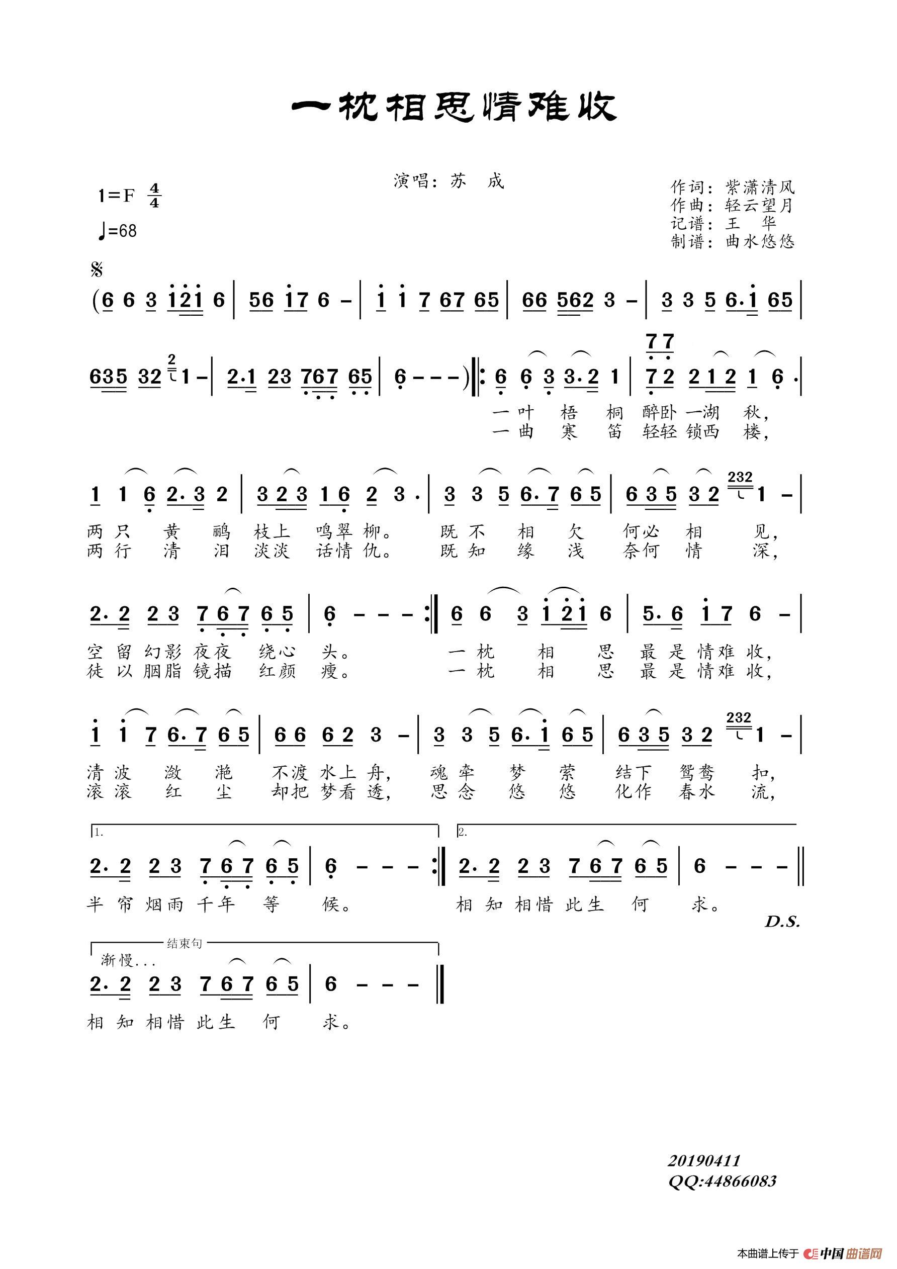 关于《一枕相思情难收》曲谱的评论