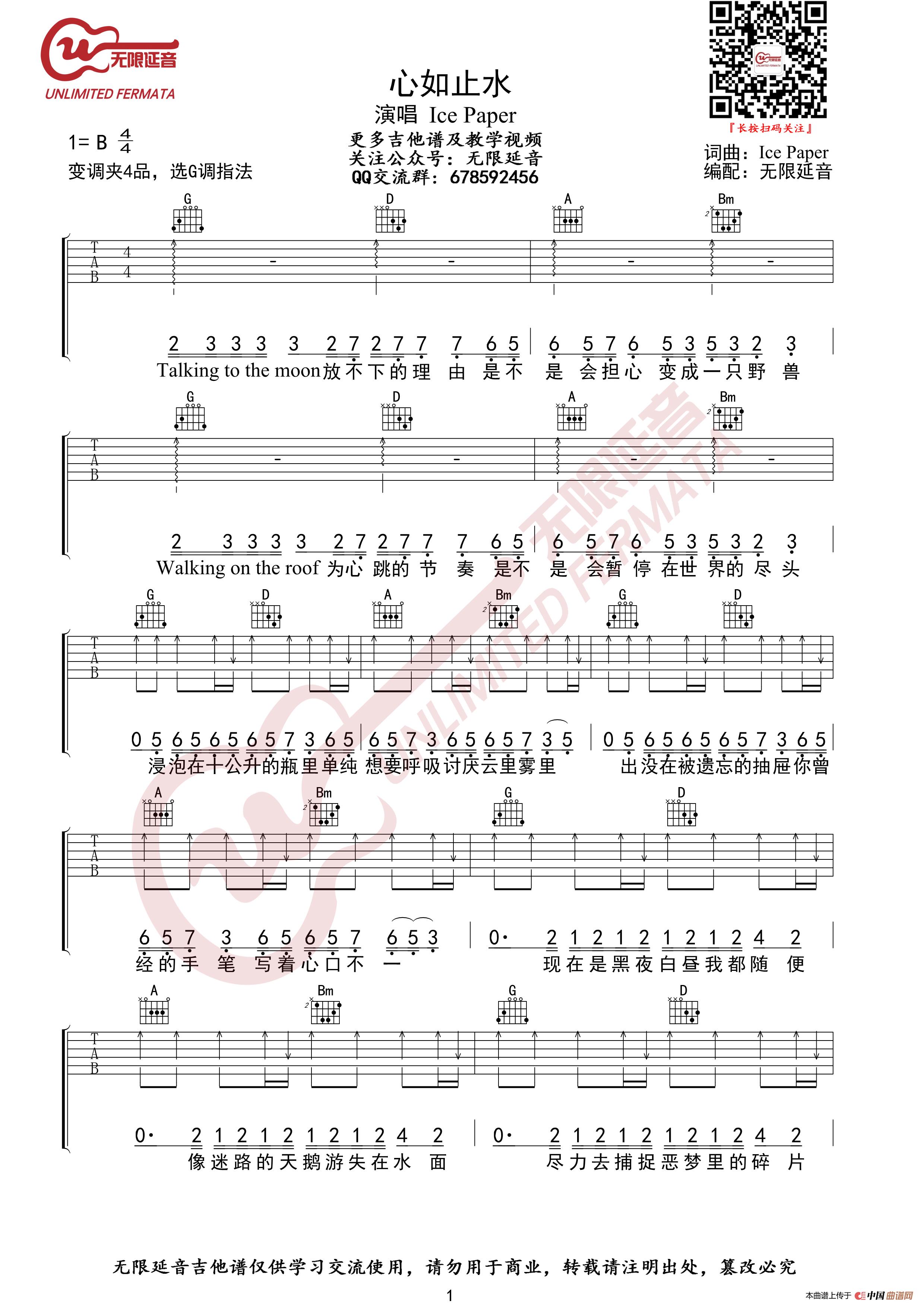 心如止水 Ice Paper 抖音热曲 吉他谱(无限延音编配)