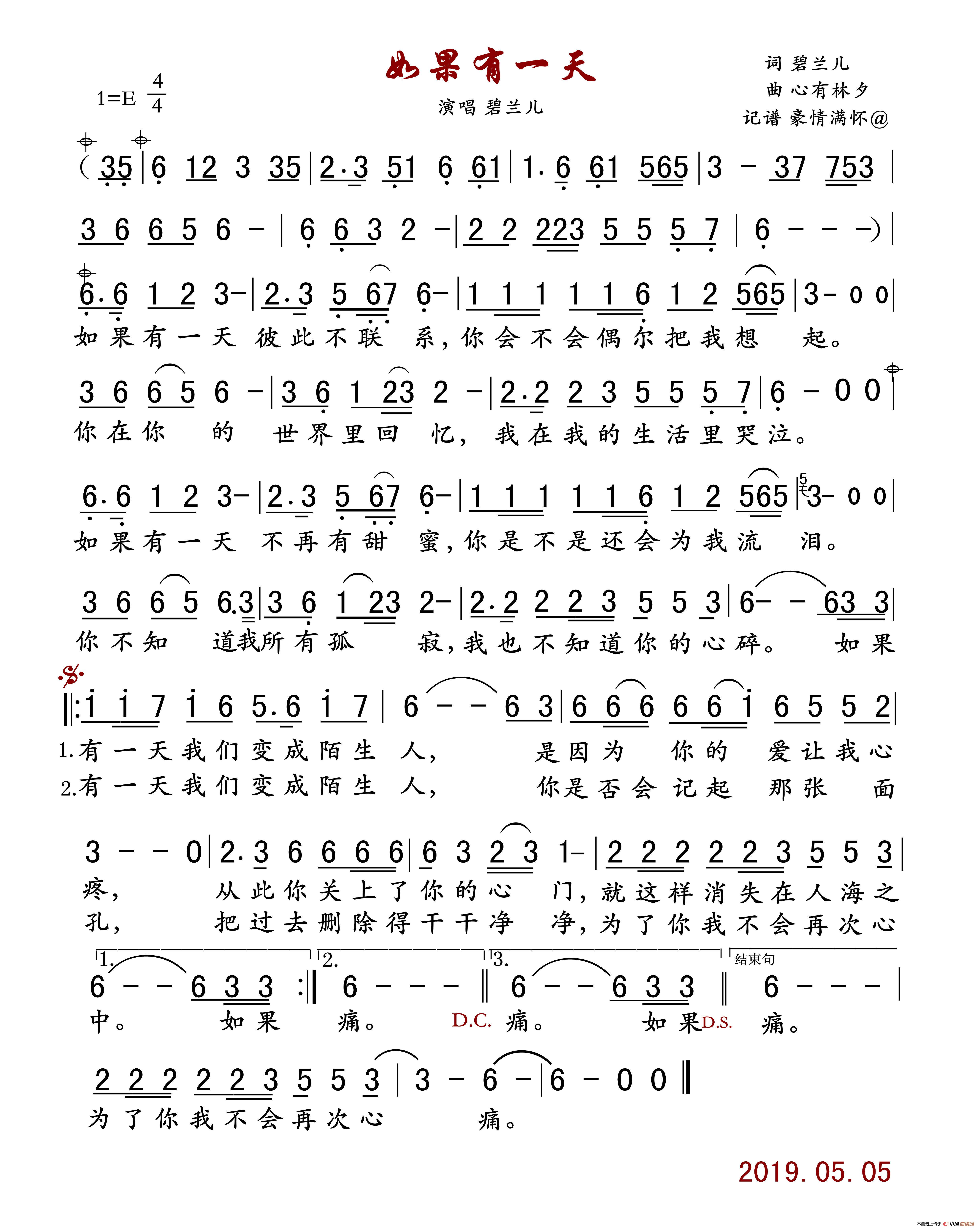 作词:碧兰儿 作曲:心有林夕 演唱(奏):碧兰儿 来源:根据同名原唱记谱 上传:豪情满怀@