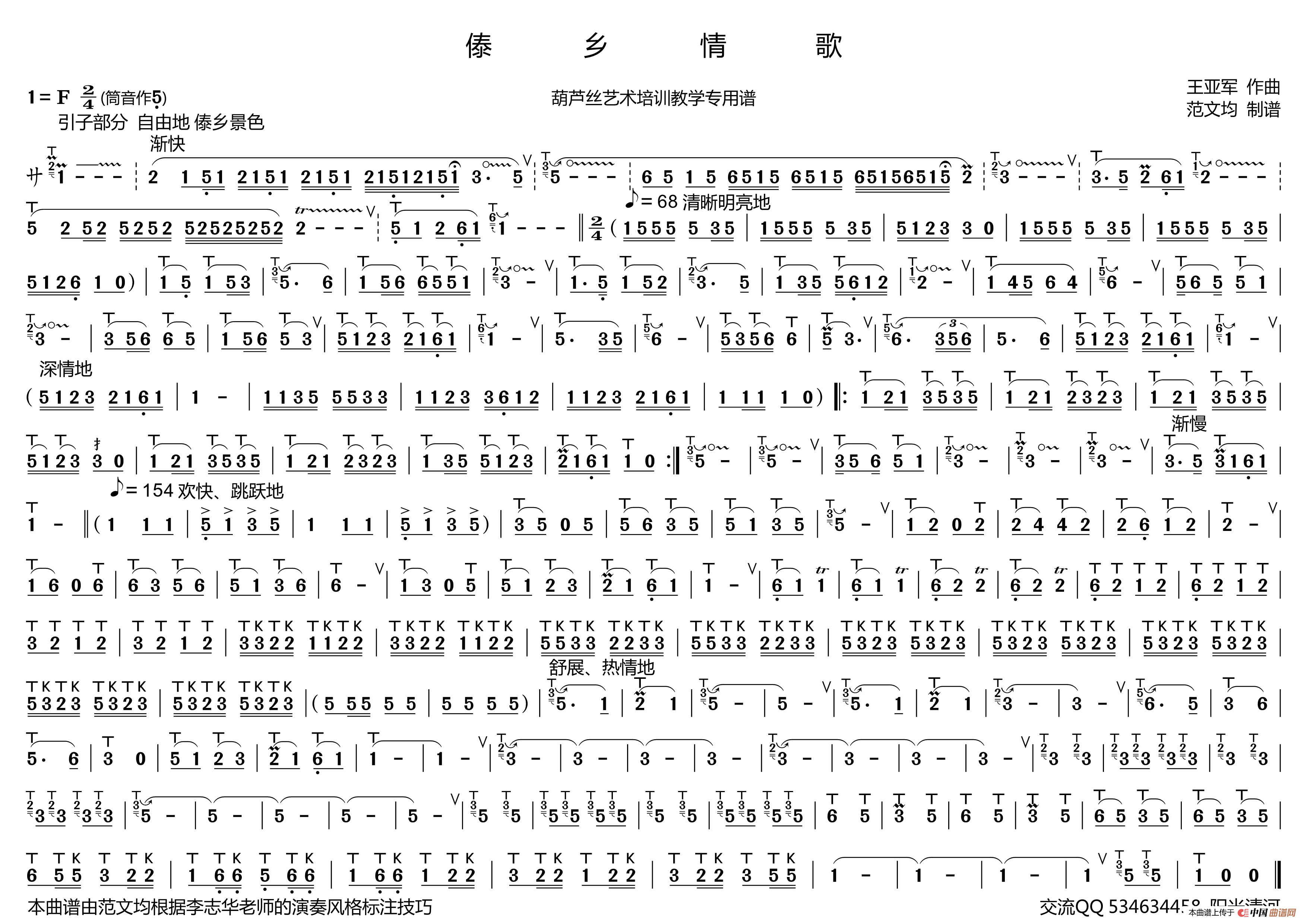 傣乡情歌简谱( 葫芦丝谱 李志华版)