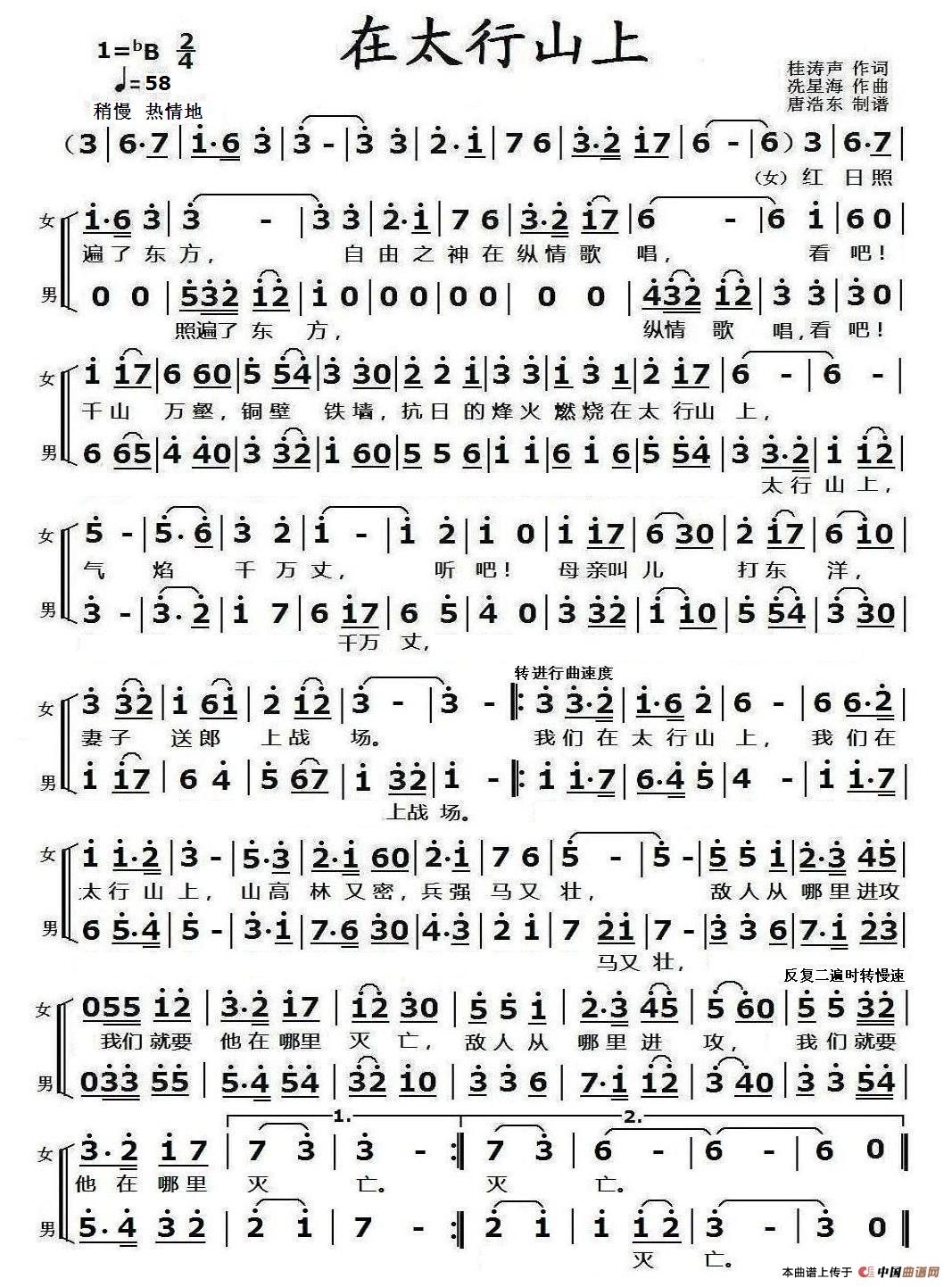 关于《在太行山上》曲谱的评论