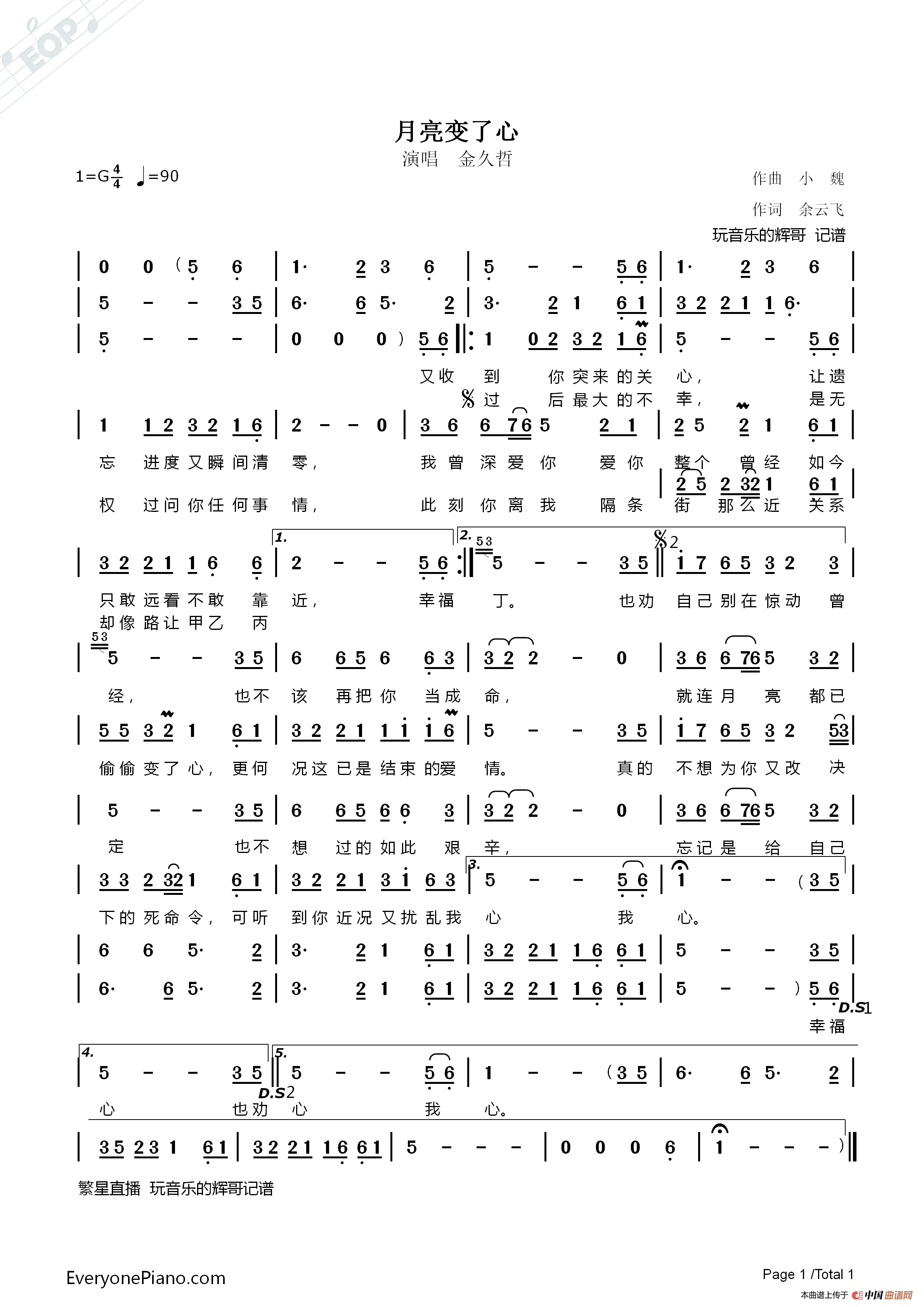 根据金久哲演唱记谱