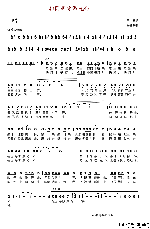 关于《祖国等你添光彩》曲谱的评论