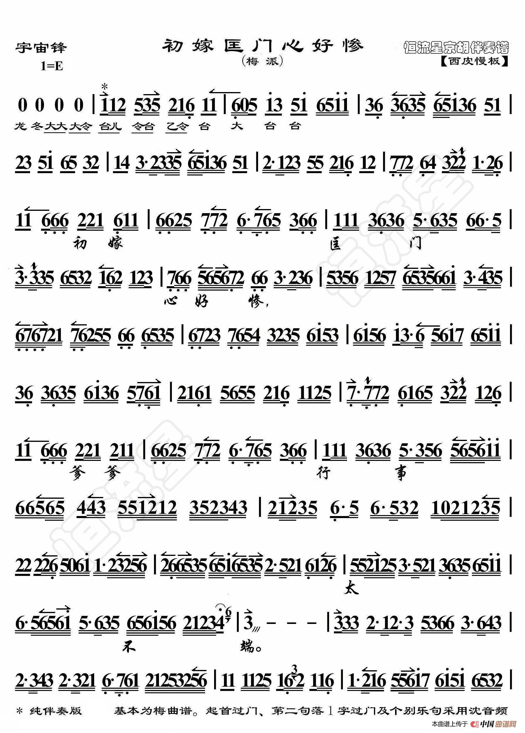 宇宙锋·初嫁匡门心好惨(京胡伴奏谱)