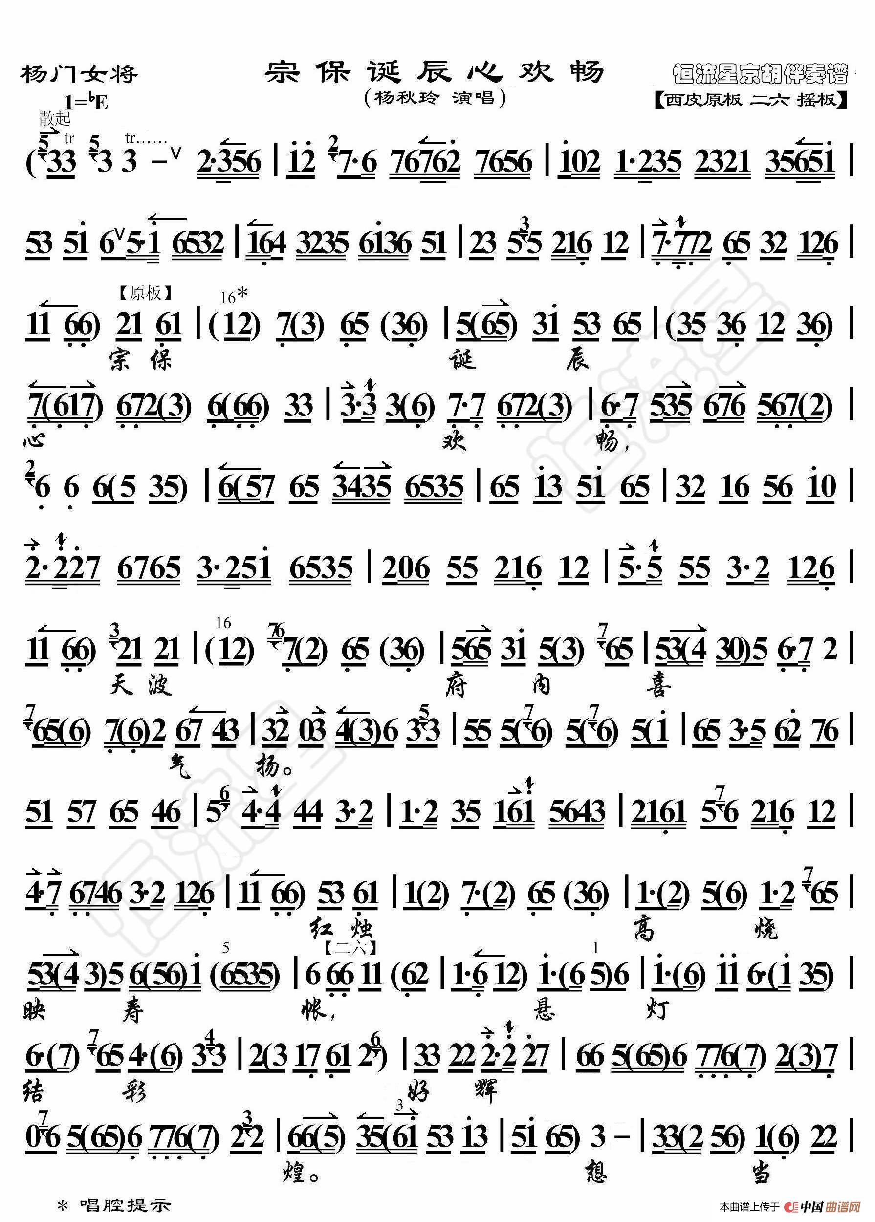 杨门女将·宗保诞辰心欢畅(京胡伴奏谱)