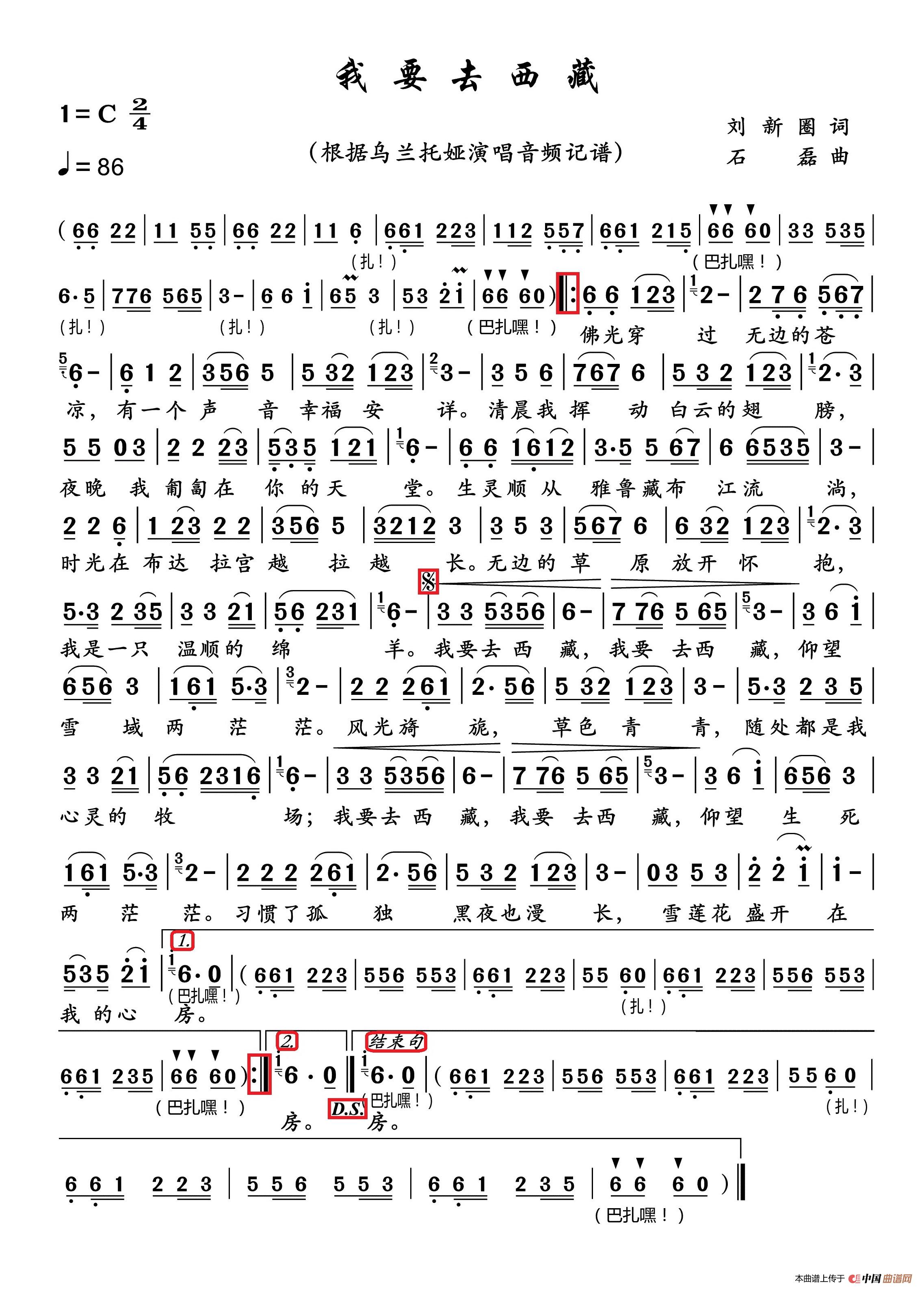 《我要去西藏》文本歌词