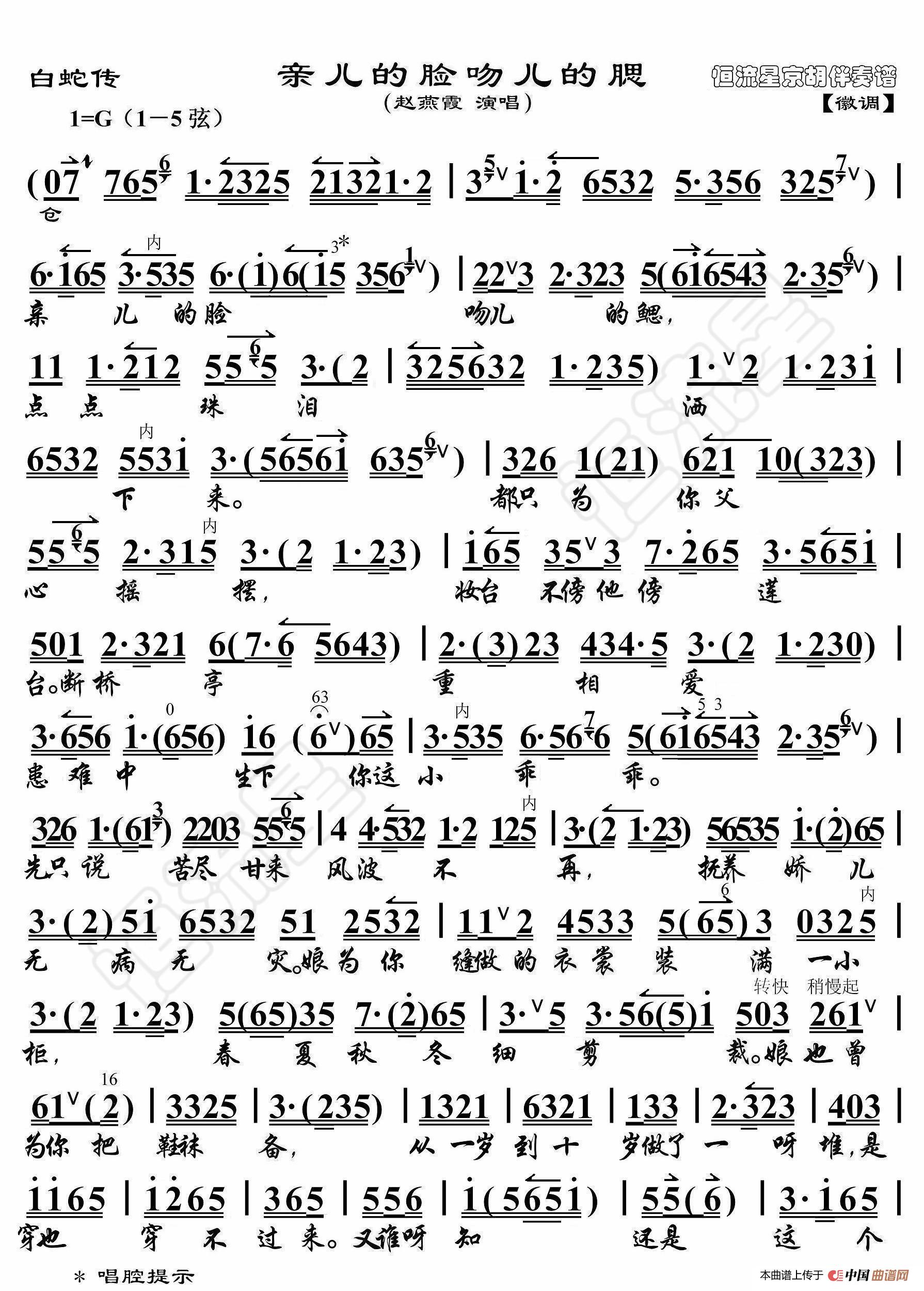 白蛇传·亲儿的脸吻儿的腮(京胡伴奏谱)