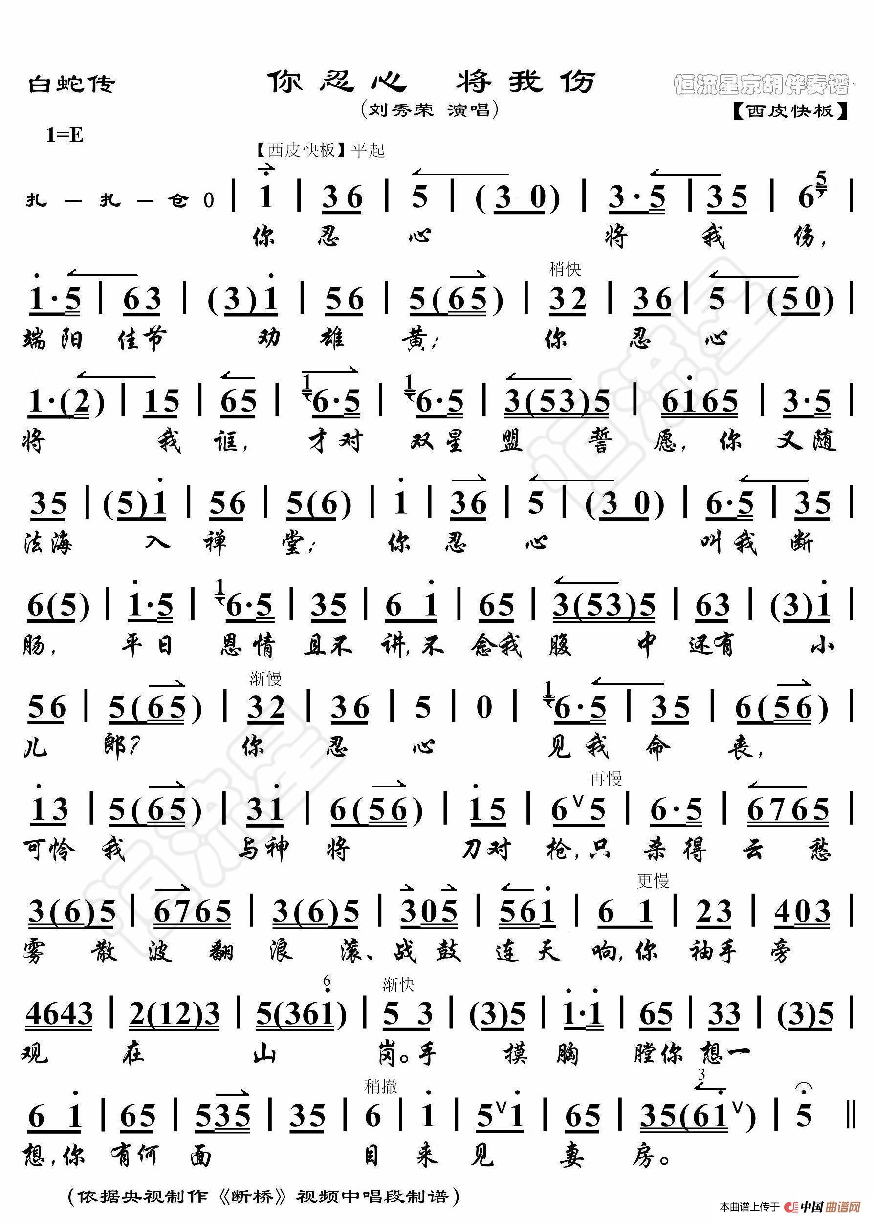 白蛇传·你忍心将我伤(京胡伴奏谱)