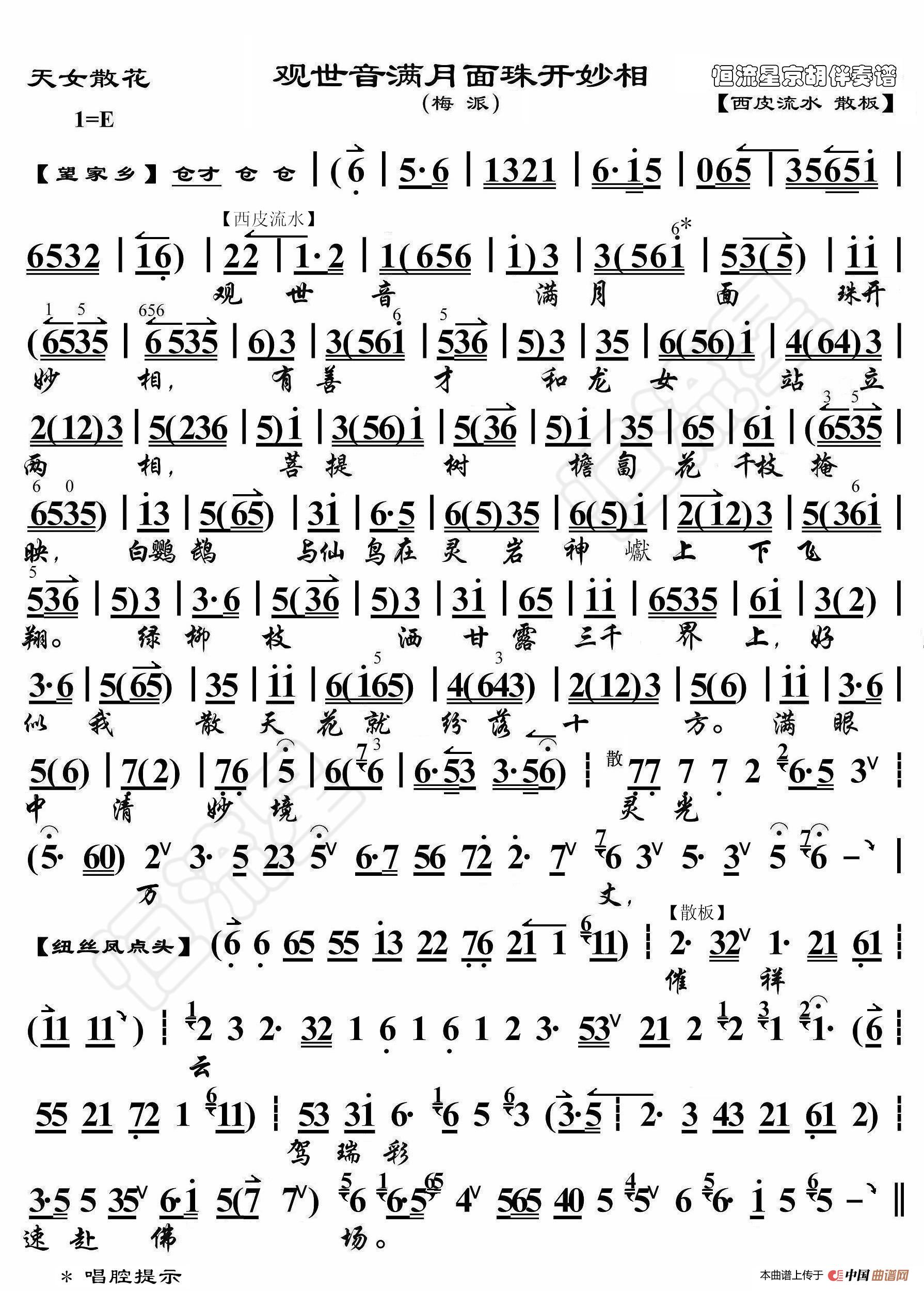 天女散花·观世音满月面珠开妙相(京胡伴奏谱)
